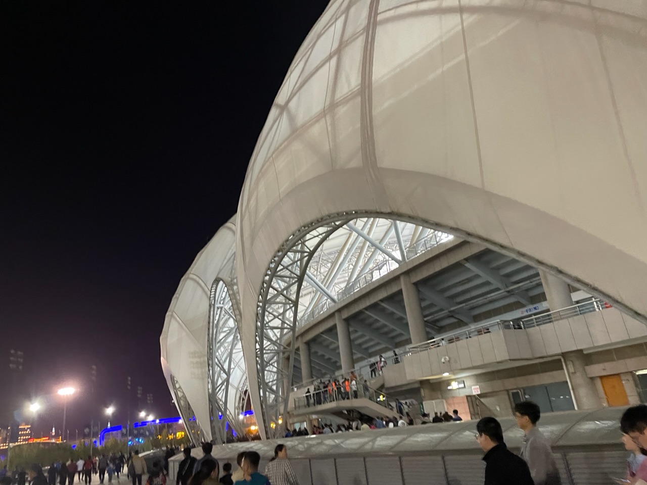 Gegen 18:30 und somit noch kurz vor der Stadionöffnung, erreichten wir dann den Umlauf. Am Stadion war so gut wie gar nichts, sodass wir die verbleibende Viertelstunde bis zur Öffnung auf einer Treppe verbrachten. Am Stadion hatte ich dann nicht den Eindruck, dass irgendjemand eine Ahnung hatte, wie mit uns umzugehen war. Ich hatte versucht im chinesischsprachigen Shop Tickets zu kaufen und hatte auf jeden Fall das Geld bezahlt. Irgendwie wurde ich das Gefühl aber nicht los, dass es sich vielleicht um einen Ticketgutschein und nicht um ein tatsächliches Ticket handelte. So absolvierten wir den Parcours und wurden immer weitergeschickt. Schlussendlich hatte anscheinend niemand Lust auf den Konflikt, denn es guckten zwar alle skeptisch, aber schlussendlich standen wir ohne richtige Kontrolle im Stadionumlauf.