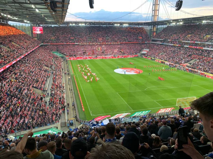 Irgendwann warfen wir dann auch das Handtuch und stellten den Support ein. Nun waren die Köllner gut vernehmbar, die sich mit der „Hey-Das geht ab“ Melodie über unseren Abstieg mokierten. Joa… Zu Beginn des Spiels gab es auch zahlreiche Spruchbänder gegen uns, die ich jetzt nicht so wahnsinnig gelungen fand. Ich nehme das mal als Zeichen, dass sie uns ernst nehmen. Viel Spaß in der nächsten Saison gegen Hoffenheim und Co… Generell fand ich den Auftritt der Südkurve jedoch heute besser als in den vergangenen Jahren. Optisch war das wie gewohnt gut und heute stimmte auch die Lautstärke. Auf die Nerven gingen mir wie in der Vergangenheit jedoch die normalen Zuschauer- ich werde mit diesem Schlag Mensch einfach nicht warm.