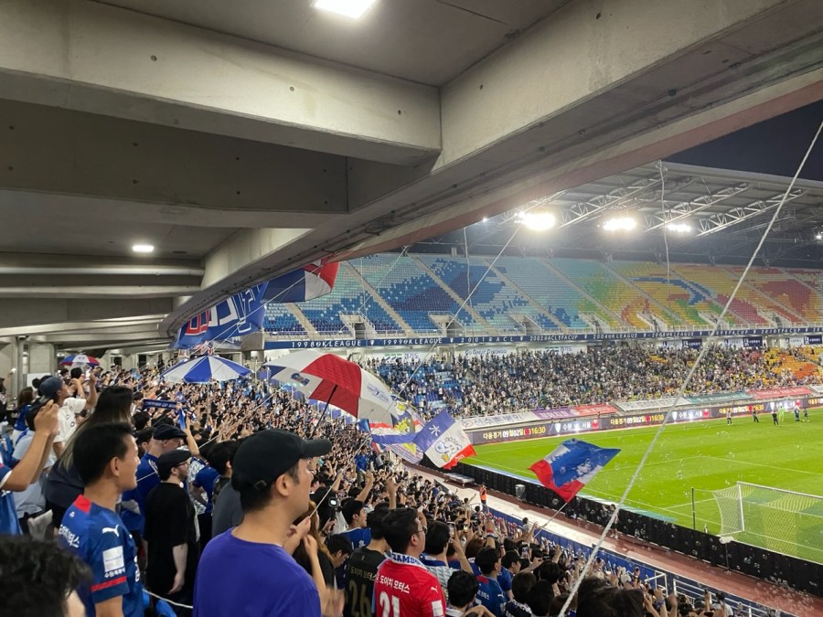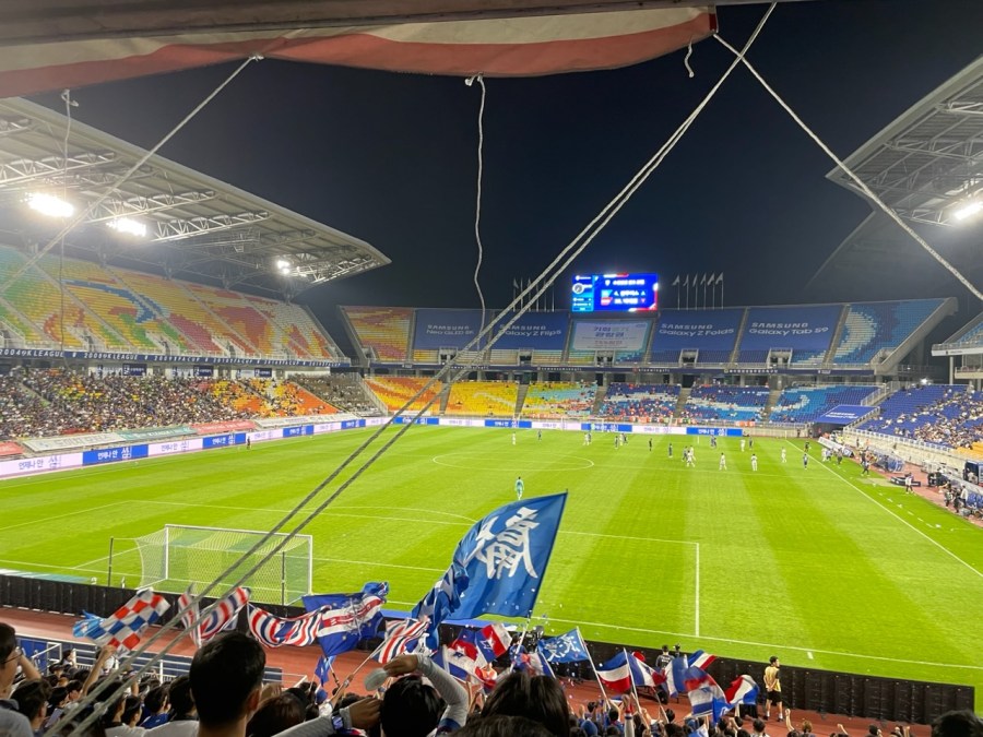 Es stellte sich also heraus, dass es verschiedene Varianten der Linie 1 gibt und diese in komplett verschiedene Richtungen fahren. Doof gelaufen! Ich widerstand dem Drang sofort auszusteigen (Okay, ich wäre auch nicht wirklich rausgekommen…) und versuchte erst einmal die Optionen zu prüfen. Irgendwie hatte ich ein Urvertrauen, dass ich mal wieder dem Glückskind-Ruf gerecht werden sollte. Nach einer kurzen Recherche stellte sich heraus, dass diese U-Bahn nach Suwon fahren sollte. Das war zwar nicht meine präferierte Option- aber gut: Es gibt ein Erstligaspiel, also ab die Post.
