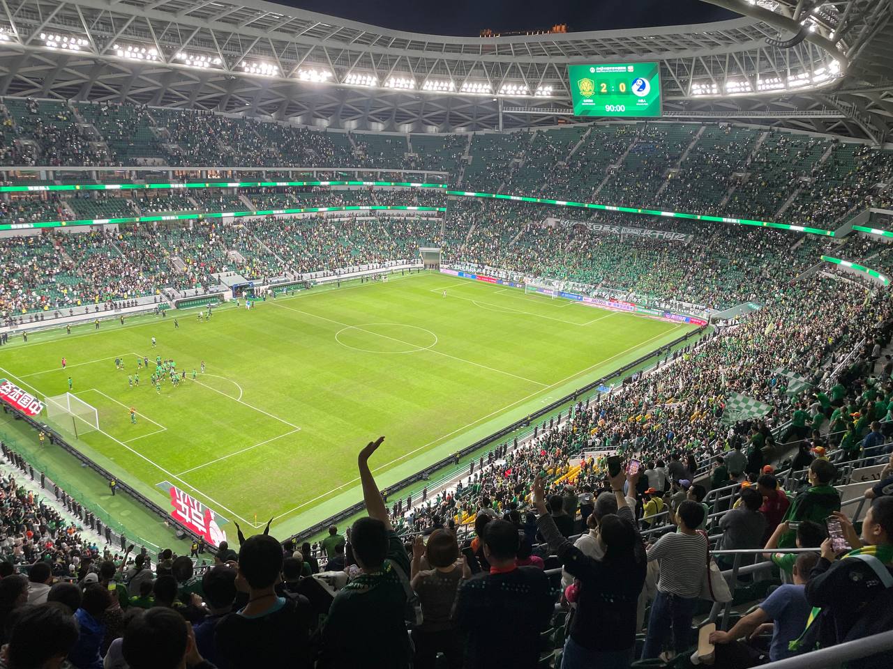 Die Heimkurve hatte heute nicht ihren besten Tag und das wirkte an vielen Stellen etwas lethargisch. Auffällig war, dass es so gut wie keine Beleidigungen in Richtung der Fans aus Dalian gab. Wenn man sich anguckt, was hier bei den sonstigen Heimspielen los ist, war das sehr bemerkenswert. Nach dem Spiel drehten zwei Spieler von Dalian noch eine Ehrenrunde durch das Stadion und wurden begeistert beklatscht. Offensichtlich gibt es hier viele Überschneidungen zwischen den Vereinen und ein recht gutes Verhältnis.