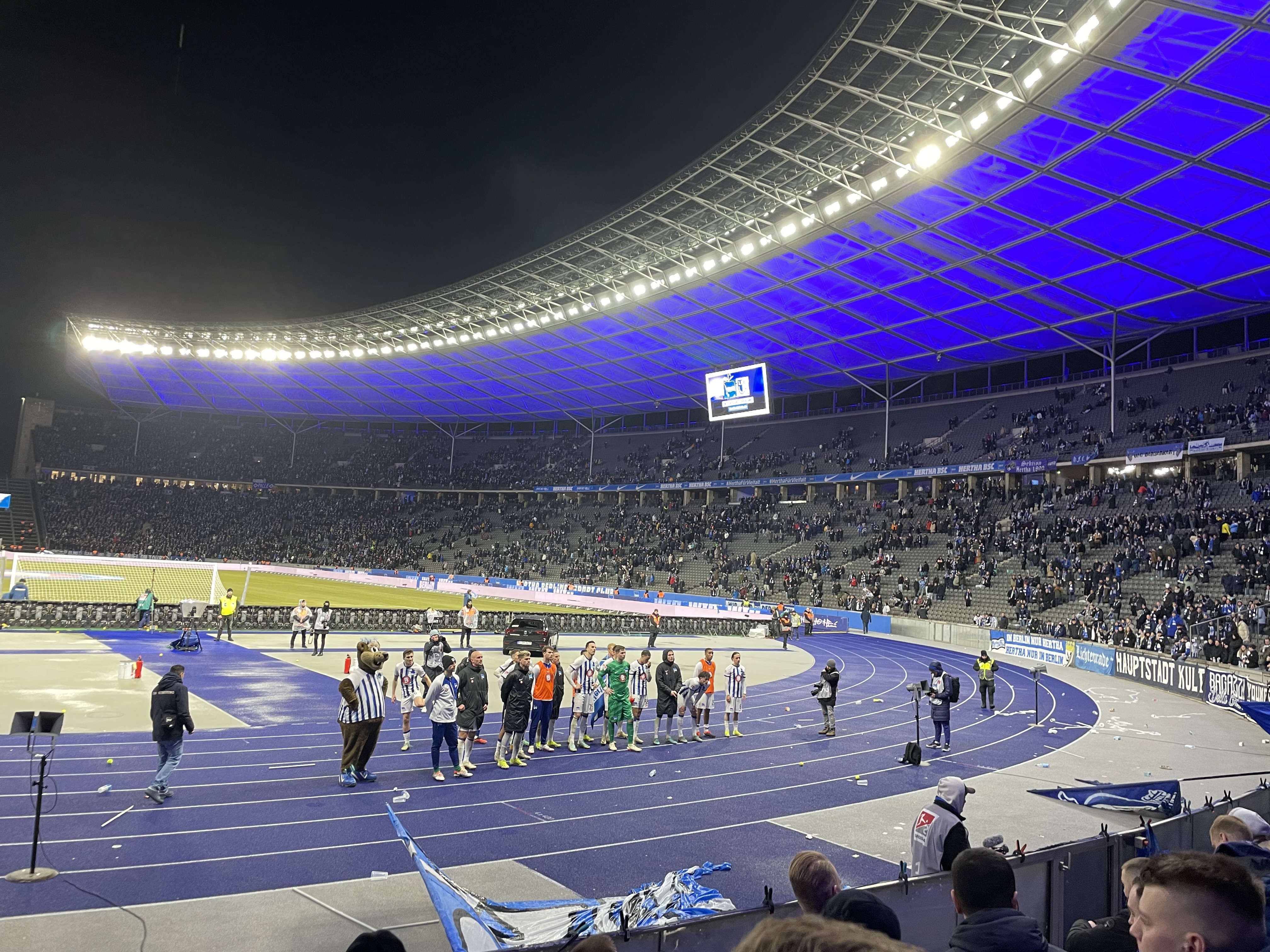 Erst nach dem Führungstreffer des HSV wurde einem bewusst wie viele Hamburger im Stadion waren. Wenn man ehrlich ist, war es vermutlich ein Verhältnis von 50/50. Wobei vermutlich auch viele Berliner HSV Fans zugegen waren. Mit der Einwechslung von Fabian Reese ging ein erneuter Ruck durch das Team und nach einem Schuss von Reese konnte Tabakovic den Abpraller ins Tor schieben und ausgleichen. Hertha bleibt aber Hertha und so erzielte der HSV spät noch den Siegtreffer. Eine weitere bittere Niederlage und so muss man mittlerweile mehr nach unten als nach oben gucken. Der Einsatz war heute besser als am Mittwoch. Wie das sein kann, verstehe ich einfach nicht.