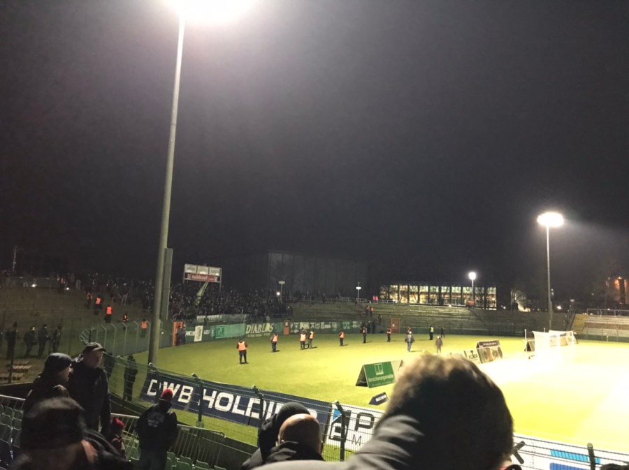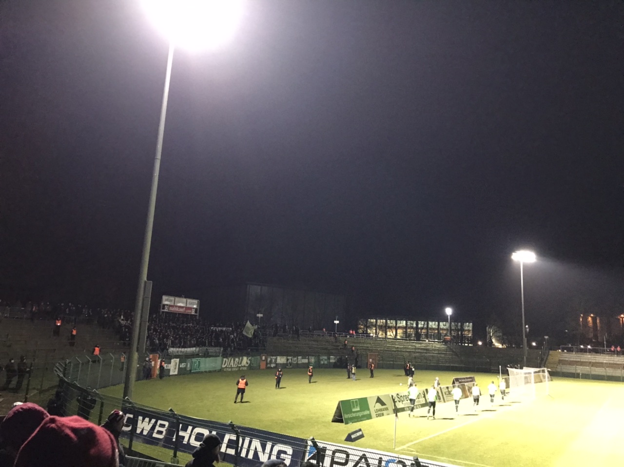 Auf dem Rasen gewann der BFC recht routiniert mit 2:0. Nach den Toren gab es jeweils eine Rakete in den Berliner Nachthimmel. Der BFC darf somit weiter vom Aufstieg träumen. Mit dem Schlusspfiff, lief ich dann in Richtung Tram und als ein „Sieg“ angestimmt wurde, ertönten auch zahlreiche „Heils“. Sehr sehr ekelhaft und auch deswegen kriege ich selbst bei Hertha immer noch ein unangenehmes Gefühl, wenn der Schlachtruf angestimmt wird- auch wenn ich bei Hertha bereits seit Jahren nicht mehr Zeuge solcher Zwischenfälle wurde. Auch der Umgangston mit Frauen, war schon sehr gewöhnungsbedürftig.