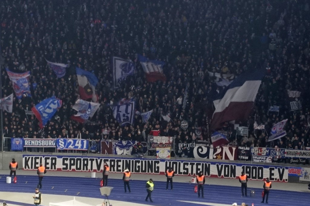 Kiel war gut und gerne mit 8.000 Leuten im Olympiastadion. Alleine deswegen macht es momentan auch so Spaß in dieser Liga ins Stadion zu gehen. Viele Gästeszenen sehen ein Gastspiel im Olympiastadion als absolutes Highlight und reisen dadurch mit großen Massen an. Die Fanszene Kiel startete mit einem Pyrointro hinter einer „Landeshauptstadt“ Fahne. Die Fahnen wurden dabei in der ersten Reihe gezündet. Unterstützt von einigen Kasslern, war das optisch über 90 Minuten ein guter Auftritt. Bis auf die Torjubel kam jedoch nichts bei uns in der Ostkurve an. Auch da: Sicher ist die eigene Kurve nicht der geeignete Platz, um einen Gästeauftritt zu bewerten.