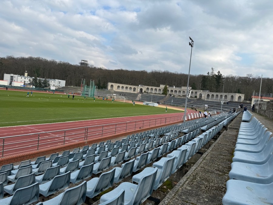 Im Vorfeld hatte ich Schreckensgeschichten über kurzfristige Verlegungen auf den Kunstrasenplatz gehört. Somit war ich ziemlich aufgeregt, als ich das Stadion betrat. Prompt breitete sich aber ein dümmliches Grinsen auf meinem Gesicht aus, als ich feststellte, dass sich hier zwei Mannschaften aufwärmten. Das Grinsen wurde immer breiter, als ich diese Perle von Stadion beobachten konnte. Das Stadion wurde ab dem Jahr 1915 als primäre Sportstätte für Frankfurt an der Oder gebaut. Auch russische Kriegsgefangene mussten an den Bauarbeiten mitwirken. Erst 1927 (Krieg lief nicht so hammer und anschließende Wirtschaftskrise) erfolgte dann die offizielle Eröffnung. Kurze Zeit später erhielt es den Namen Ostmarkstadion. Adolf Hitler sprach hier (wohl) im Jahr 1932 bei einer Parteiveranstaltung der NSDAP und auch der Schmutz von SA und SS nutzen das Stadion in der Folge für Aufmärsche.