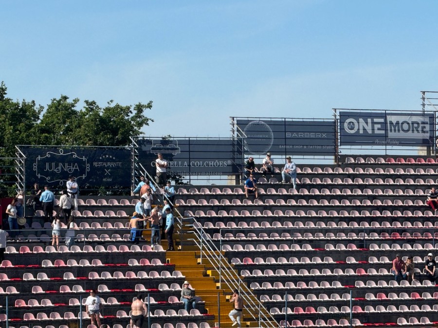 Hinter dem Tor fanden sich circa 20 Fans von Canelas ein, die aber ziemlich zerstreut standen. 4-5 Kaliber waren aber auch dabei und gerieten am Ende dann auch noch in eine kleine Auseinandersetzung mit Securities und der Polizei.