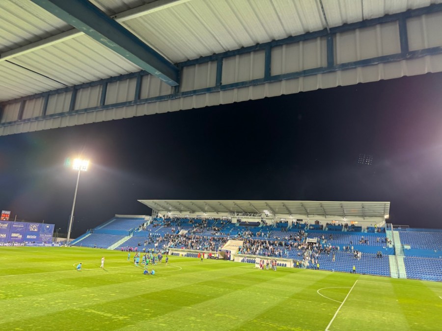 Vizela hatte einen kleinen Stimmungsblock auf der gleichen Tribüne, der aber eher selten in Erscheinung trat. Dafür war das restliche Publikum gut aufgelegt. Insbesondere auf der Haupttribüne gab es einen ansehnlichen Teil, der das Spiel komplett im Stehen verfolgte und ständig angezündet war. Die Beschimpfungen fielen selbst hier in Portugal noch einmal heraus.