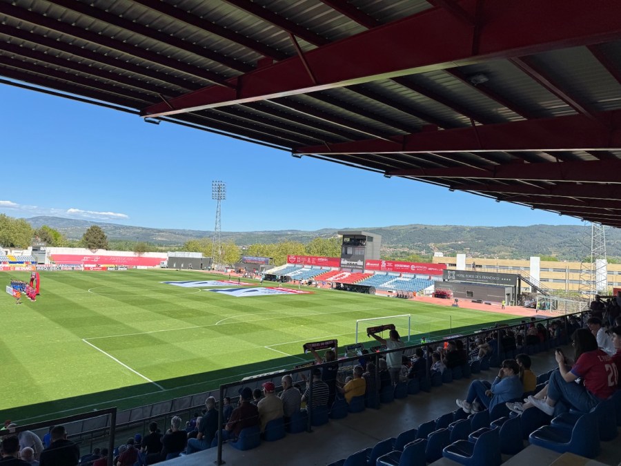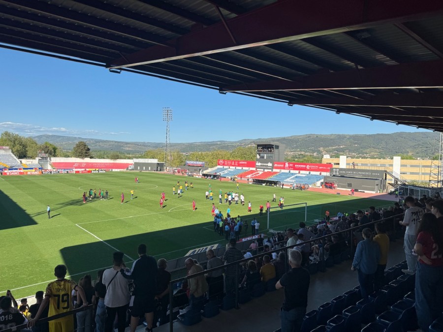 Ich fand einen schönen Platz auf der Hintertortribüne und war vom Andrang positiv überrascht. Aufgrund des fehlenden Alternativprogramms in Chaves schien sich hier ein Querschnitt der Gesellschaft zu versammeln: Von der Dorfjugend bis hin zum Renter-Ehepaar. Ebenfalls bemerkenswert: Hier wurde heute Vollbier ausgeschenkt und somit glich der Weg von der Tribüne bis zum Vereinsheim einer Autobahn und es wurde ordentlich gebechert. Das Stadion bot Ausbau an vier Seiten und einen herrlichen Ausblick auf die umliegenden Hügel. Das war erstligareif.
