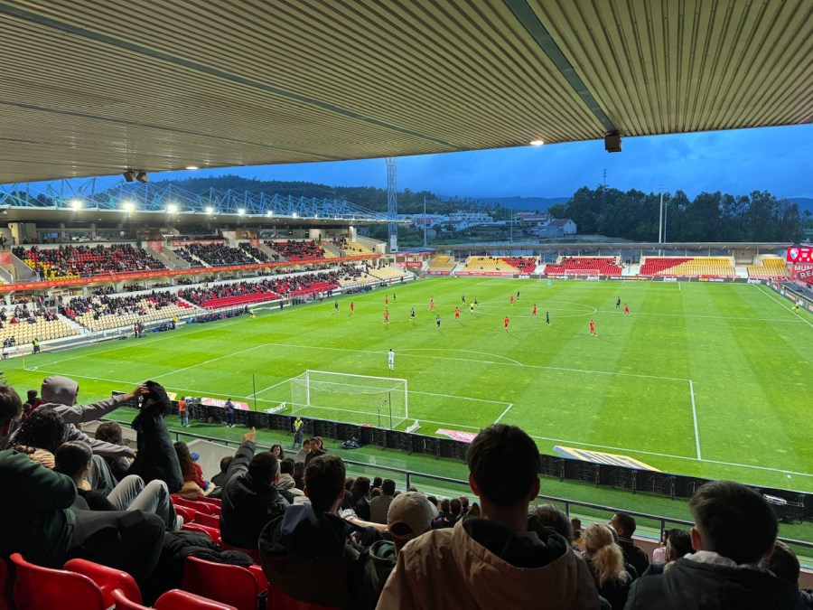 Die circa 25 Gäste aus Arouca traten nicht weiter in Erscheinung. Arouca befindet sich im absoluten Niemandsland der Tabelle mit fast 20 Punkten Abstand in beide Richtungen (Europa und Abstieg). Gil Vicente muss noch etwas in Richtung Relegationsplatz gucken und konnte somit einen Punkt gut gebrauchen. Die Gäste aus Arouca spielten jedoch einen sehenswerten Fußball und konnte somit mit 0:2 in Führung gehen. In der 90. Minute fingen die ersten Leute an das Stadion zu verlassen. In der 94. Minute gab es jedoch noch einen langen Ball und Gil Vicente konnte den Anschlusstreffer erzielen. Jetzt keimte noch einmal Hoffnung auf. Anstoß, Ballgewinn, langer Ball und der Spieler von Gil Vicente schiebt den Ball tatsächlich zum 2:2 ein. Jetzt tobte das ganze Stadion und die Spieler rutschten auf dem Rasen im Regen nur so umher. Solche Geschichten schreibt nur der Fußball.