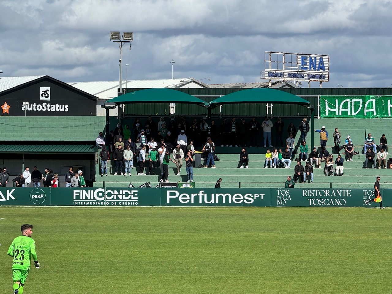 Die Ausgangslage, die Feiertage, die unbändige Lust auf den Aufstieg- vermutlich war es eine Mischung aller Faktoren, die die Leute aus dem Haus lockte. Hier in Leça war heute die Hölle los. Leça ist in der fünften Liga definitiv verkehrt. Man spielte immerhin fünf Jahre in der ersten portugiesischen Liga- ehe man 1998 wegen finanzieller Probleme zwangsabsteigen musste. Seitdem stottert zumindest in sportlicher Sicht der Motor etwas. Es war aber sehr auffällig wie professionell der Verein sonst agiert: Social Media Auftritt, gut gepflegte Homepage, Onlineshop, gute Abwicklung am Spieltag- das sieht man sonst in dieser Liga nicht.