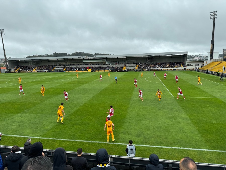 Lourosa brauchte dringend einen Sieg, um die Chance auf den Aufstieg am Leben zu erhalten. In der Aufstiegsrunde mit acht Mannschaften steigen die beiden Bestplatzierten direkt in die zweite Liga auf. Der Drittplatzierte bekommt im Playoff die Chance auf den Aufstieg. Vor der Partie stand Braga auf Platz 2 und Lourosa auf Platz 4. Durch einen Sieg konnte die Heimmannschaft bis auf einen Punkt heranrücken. Ihr könnt es euch denken: Ich war für die Heimmannschaft aus Lourosa und konnte mein Herz jetzt nicht für die Zweitvertretung von Braga erwärmen.