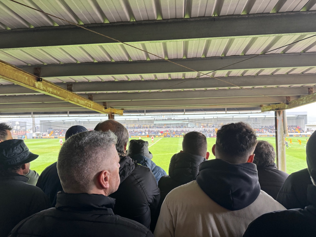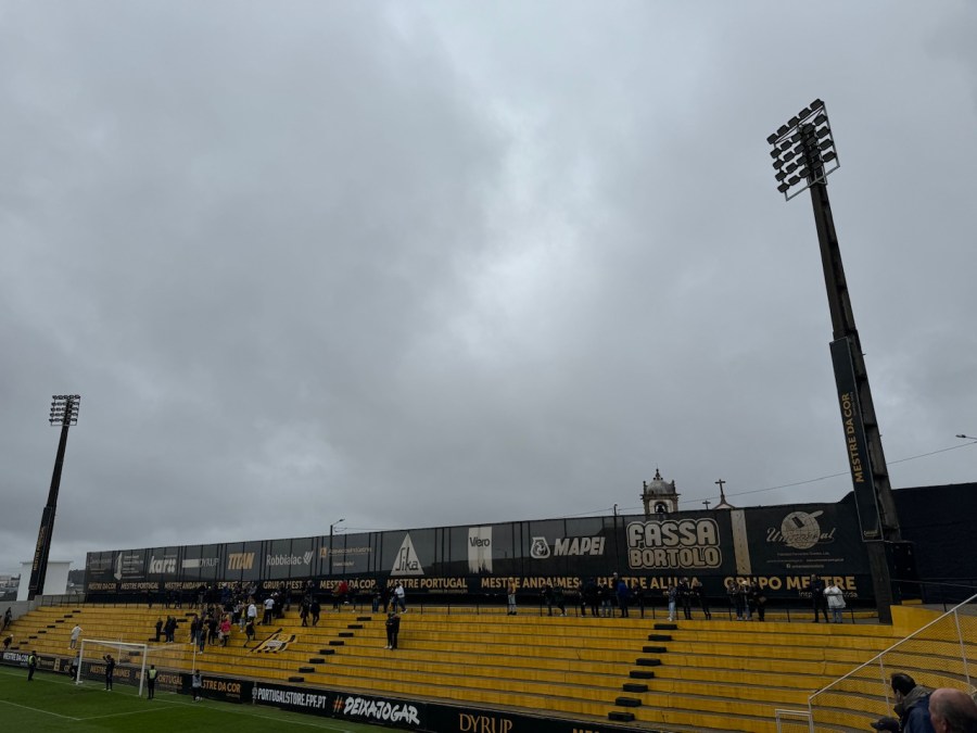 Erschwerend hinzu kam: Ich mochte einfach alles an diesem Heimverein. Austragungsort war einmal mehr ein sehr schönes Stadion mit Ausbau an 4 Seiten und was mir vor allem gefiel war, dass die Gegentribüne komplett aus Stehplätzen bestand- dadurch entstand eine wirklich coole Fußball Stimmung, die man in der Form in Portugal eher seltener findet. Das Stadion war vermutlich auch aufgrund der wichtigen sportlichen Situation sehr gut gefüllt. Hinter dem Tor gab es einen Stimmungsblock von zirka 20 Leuten, der auf sehr sympathische Art und Weise ihre Mannschaft unterstützte, aber auch auf Haupttribüne und Gegengerade gab es immer mal wieder sporadische Gesänge.