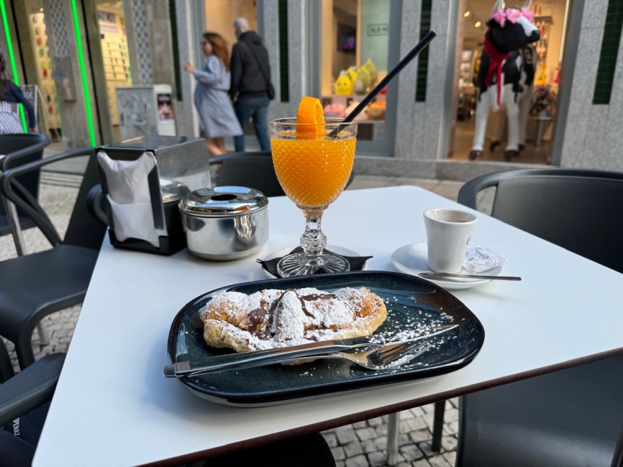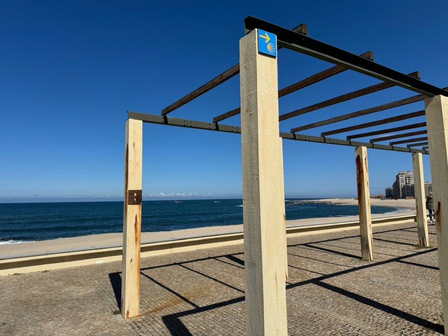 Braga B trägt seine Heimspiele aus unerklärlichen Gründen nämlich in Fão aus. Ein Ort, der außer mit dem Auto kaum zu erreichen ist. Allerdings führt der Küstenweg des Jakobswegs an dem Ort vorbei und von dort ist es dann nur noch ein kleiner Abstecher bis zum Stadion. Am Morgen ging es also mit der Metro nach Póvoa de Varzim. Dort startet nämlich die zweite Etappe des Weges. Noch bevor ich den ersten Kilometer abgeschlossen hatte, stoppte ich erst einmal für ein dekadentes Frühstück. Man will ja auch noch leben.
