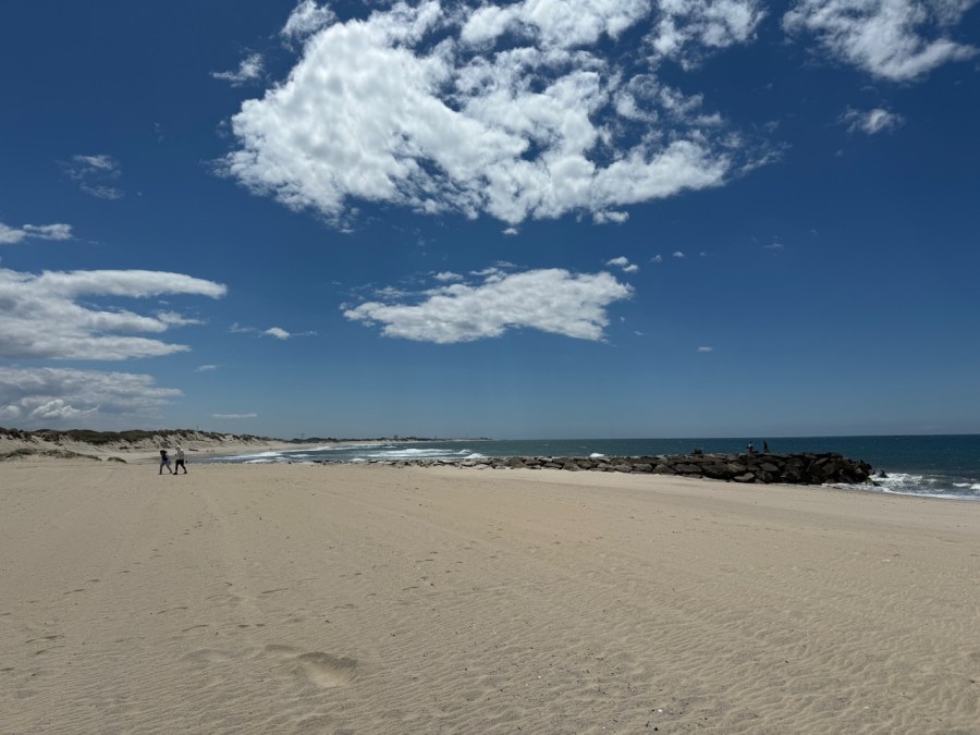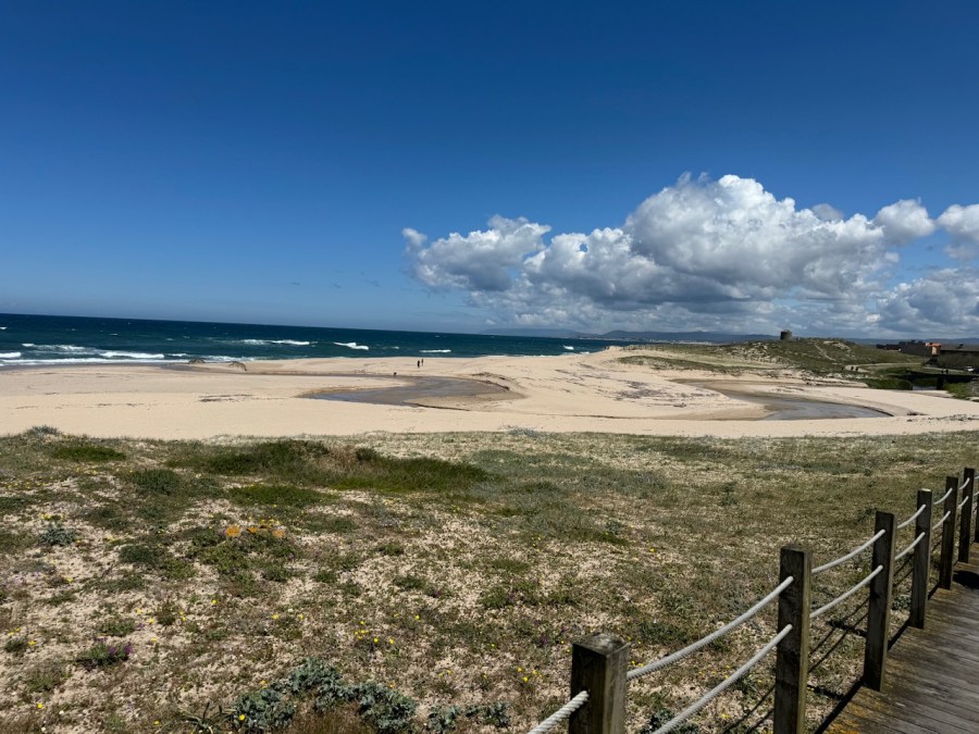 In der Folge war die Weggestaltung wirklich wunderbar. Es ging fast die gesamte Zeit an der Küste entlang. In Póvoa teilte man sich die Promenade noch mit den vielen Sonntags-Power-Walkern. Dann dünnte sich der Verkehr langsam aus und es ging über Holzsteelen weiter nach Norden. Irgendwann musste man dann ein bisschen in das Landesinnere ausweichen, da sich ein Golfplatz den besten Platz gesichert hatte. Dieses Land ist einfach so lächerlich schön. In Apúlia war dann der Großteil der Hausaufgaben erledigt. Nur leider konkurrierte ich mit dem gesamten Dorf um einen Platz zum Mittagessen und so klappte es erst im zweiten Anlauf und einiges an wertvoller Zeit ging flöten.