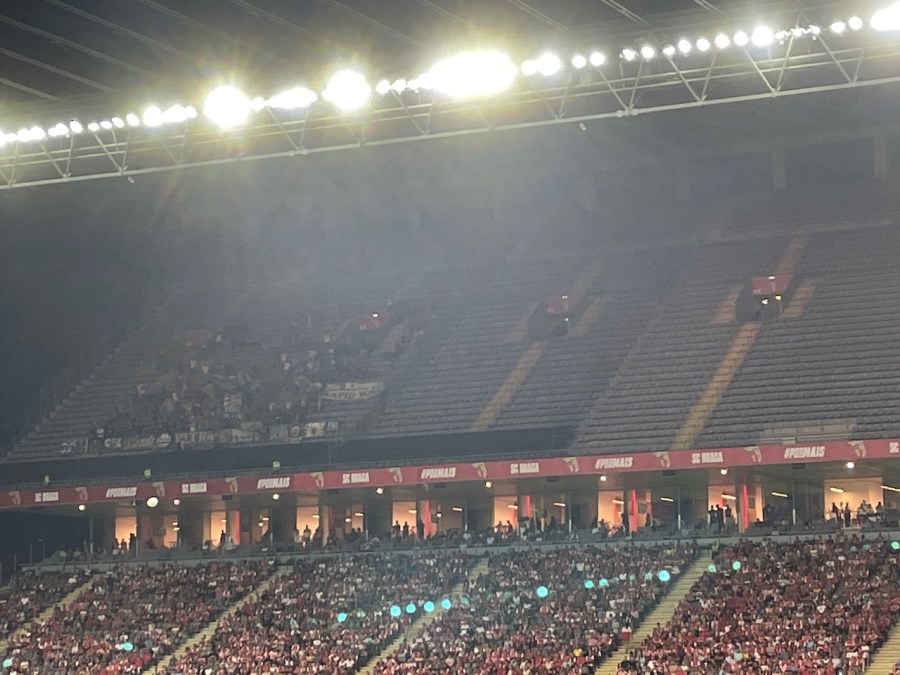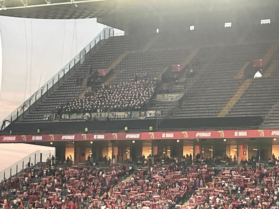 Die Heimseite fand ich ganz solide. Ich saß direkt gegenüber und vermutlich auch deswegen waren die Gesänge gut vernehmlich. Ich finde viele der Melodien von Braga recht gelungen und muss in diesem Jahr meinen eher zurückhaltenden Eindruck der Fanszene von Braga langsam revidieren. Das war auf jeden Fall auch heute wieder sehr solide.