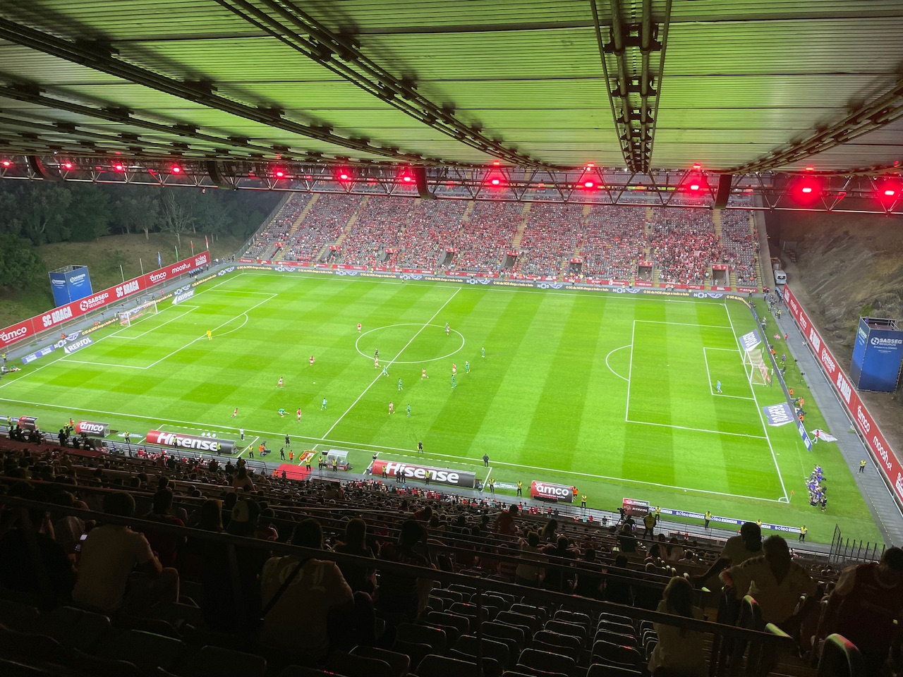 Es stellte sich aber heraus, dass das Stadion nicht gut geeignet ist, um Gäste zu gucken. Zwar konnte ich Rapid dieses Mal gut sehen, aber akustisch kam so gut wie gar nichts bei mir an. Für mich war es das erste Mal Rapid und mich würde es wirklich interessieren, wie der Auftritt in der Eigenwahrnehmung war. Durch die fehlende Akustik war ich nicht ganz so geflasht wie bei Zürich in der vergangenen Woche. Optisch mit tollem Fahneneinsatz sehr gelungen- aber der ganz große Wow-Faktor blieb heute aus. Schade!