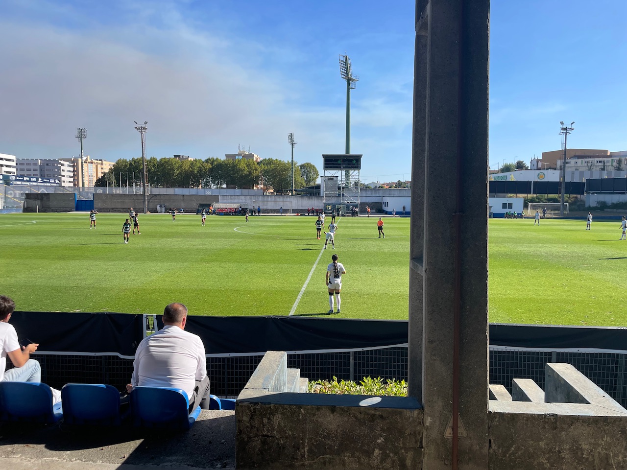 Sporting war der haushohe Favorit. Unter der Woche hatte man in den Playoffs die Champions Leauge-Qualifikation eingefahren. Dementsprechend schien man heute auch etwas zu rotieren. Die portugiesische Nationalstürmerin Telma fand sich beispielsweise nur auf der Bank wieder. Sporting tat sich schwer und brauchte einen Elfmeter kurz vor der Pause, um in Führung zu gehen. Nach dem Wiederanpfiff konnte Famalicão durch die schnelle Stürmerin Diana Meriva ausgleichen, die schon bei meinem Besuch in Braga getroffen hatte. Mit der Einwechslung von Telma kam dann Leben in die Bude und sie konnte mit einem spektakulären Assist per Hacke glänzen. Schlussendlich wurde es ein etwas glanzloser Arbeitssieg für Sporting, der mit 1:3 vermutlich etwas zu hoch ausfiel.