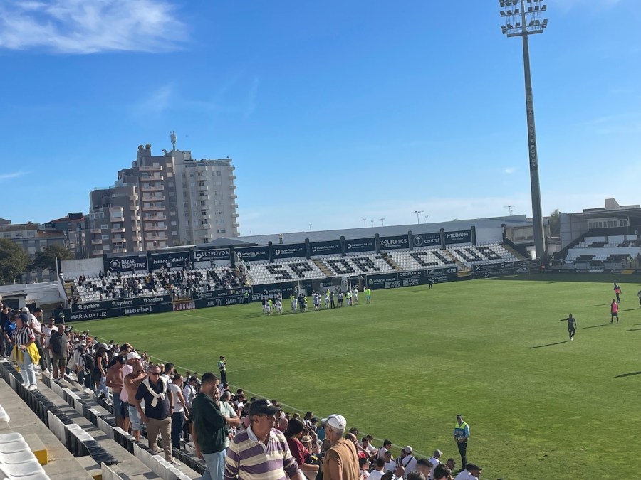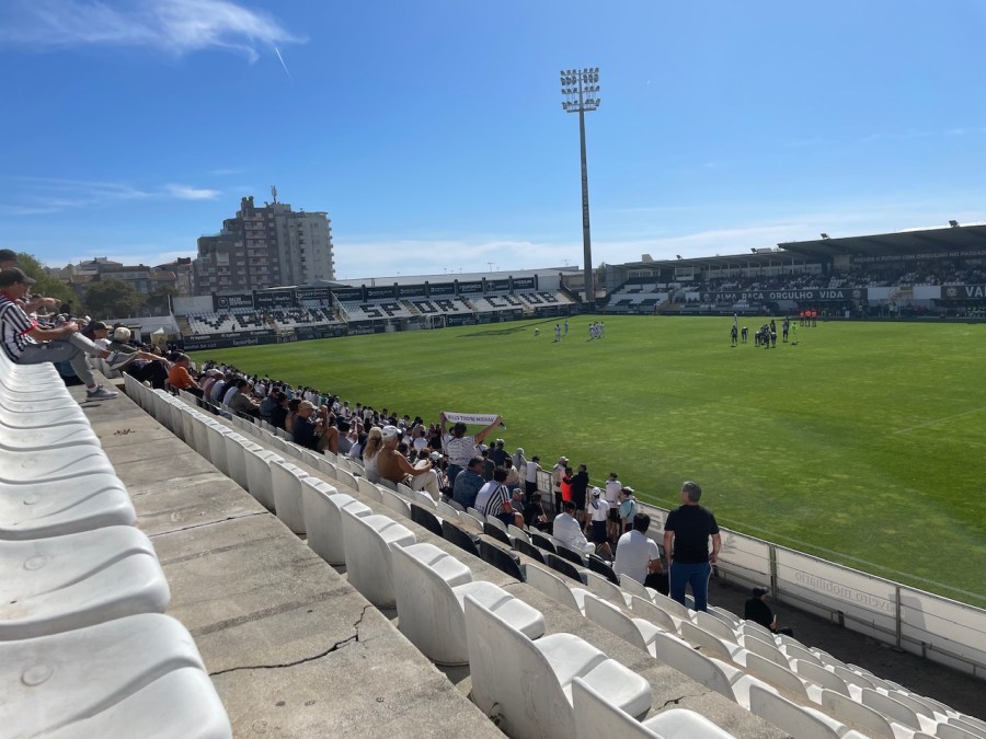 Die Fanszene von Sanjoanense erreichte erst zur 20. Minute das Stadion. Beim Einlauf wurden sie von Varzim bepöbelt. Direkt nach dem Betreten des Stadions fiel das 1:0 für Varzim. Ein bitteres Timing. Trotz der deutlichen Niederlage zogen sie ihren Stiefel solide durch und waren immer mal wieder zu hören. Das geht in der dritten portugiesischen Liga deutlich schlechter.
