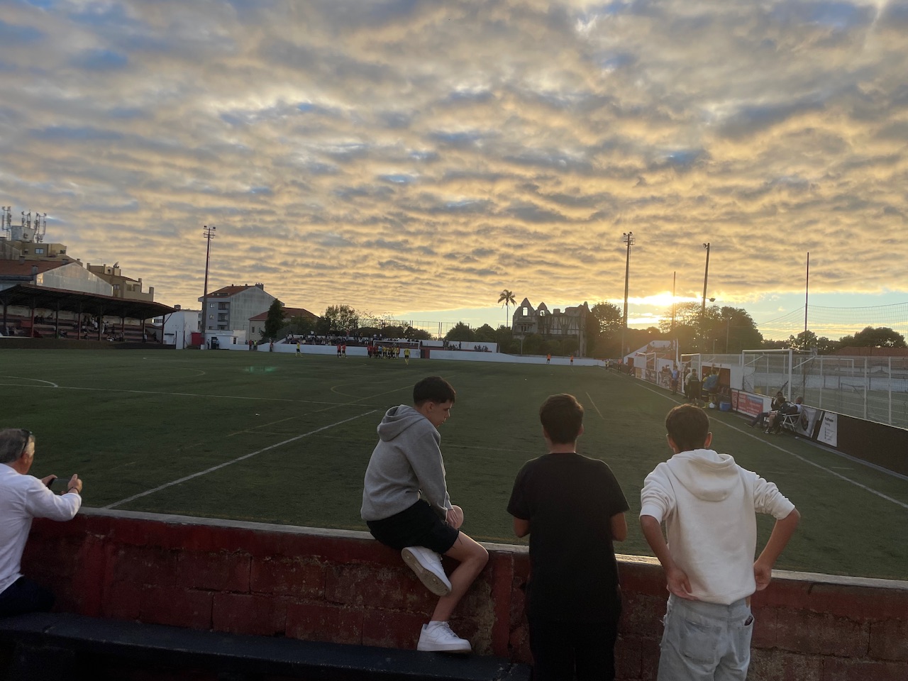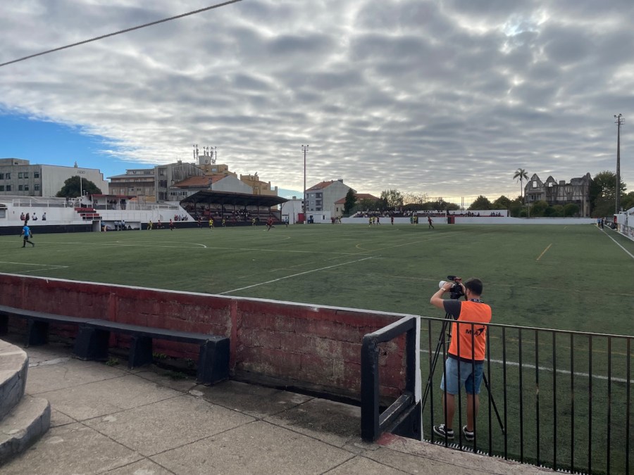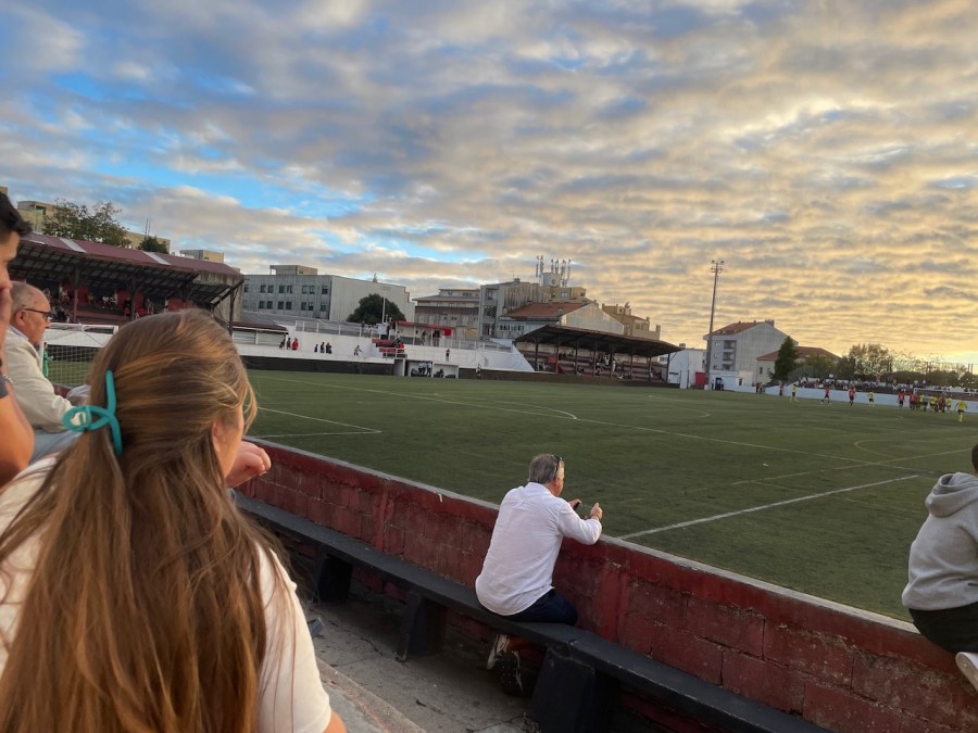 Ein goldener Spätsommer Sonntag in Porto lachte uns an und wollte für einen Fußballausflug genutzt werden. Erfreulicherweise ging es heute gemeinsam mit dem Klabauterkeaper in das Stadion. Die Anreise verlief problemlos mit der Metro und danach schloss sich noch ein 10 minütiger Fußweg an. Keine nennenswerte Schlange an der Kasse und so betraten wir 10 Minuten vor Anpfiff das Stadion. Dieses ist ein echtes Schmuckstück mit einer genialen Holztribüne und einigen Stufen. Auf der Hintertorseite sorgt eine sehenswerte verfallene Villa für den Portugal Charme. Als dort später noch die Sonne unterging war es Zeit für ein kleines Tränchen. Dieses Land…