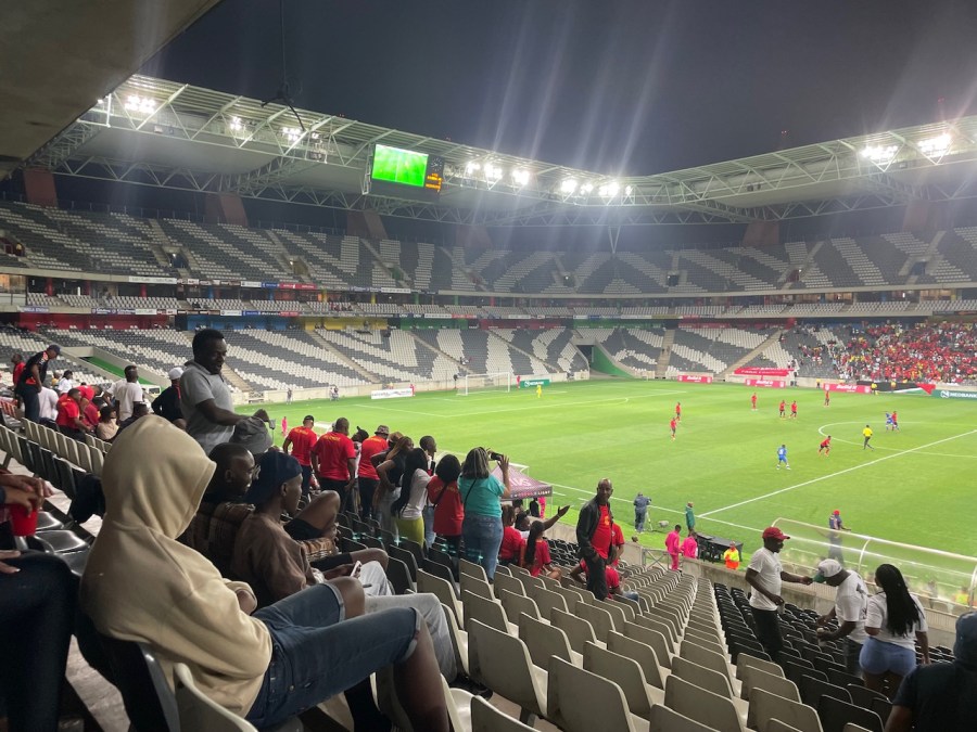 Es war wirklich bemerkenswert, dass fast ausschließlich Mosambikaner im Stadion waren. Einige vermutlich Immigranten, aber der Großteil kam aus Maputo und nutze den kurzen Anfahrtsweg nach Nelspruit. Keine schlechte Wahl, denn auf dem Rückweg kann man die günstigen Preise in Südafrika nutzen und das Auto mit Lebensmitteln und Klamotten vollknallen. Circa 1.800 der 2.000 Zuschauer waren Mosambikaner.