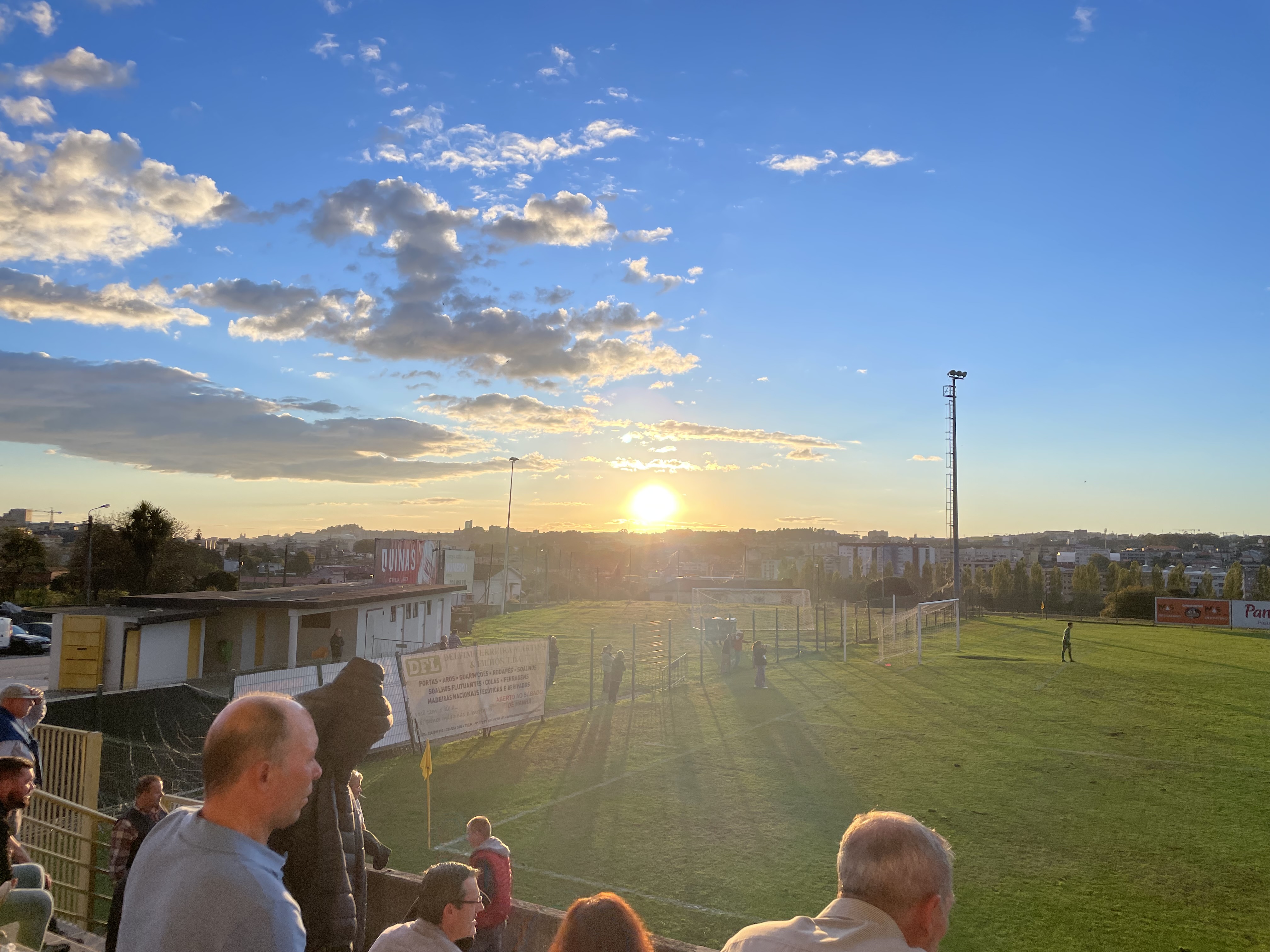 Gegner war einmal mehr Gandra. Zum mittlerweile vierten Mal in dieser Saison besuchte ich also ein Spiel dieser Mannschaft. Der Eindruck war wie immer: Es ist total erstaunlich wie viele Fans mitfahren, aber es gibt wohl kein „fußballferneres Publikum“, als diese Männer und Frauen. Wahnsinnig nett sind sie aber, denn ich setzte mich fälschlicherweise direkt in den Haufen und konnte in der Folge die Gespräche überhören. Groundhoppen bringt einem dem Skill des Unsichtbar seins so nahe wie es nur geht. Niemand nimmt Notiz von einem und man kann einfach ganz entspannt seinen Gedanken nachhängen und die Umgebung beobachten. Ich liebe es!