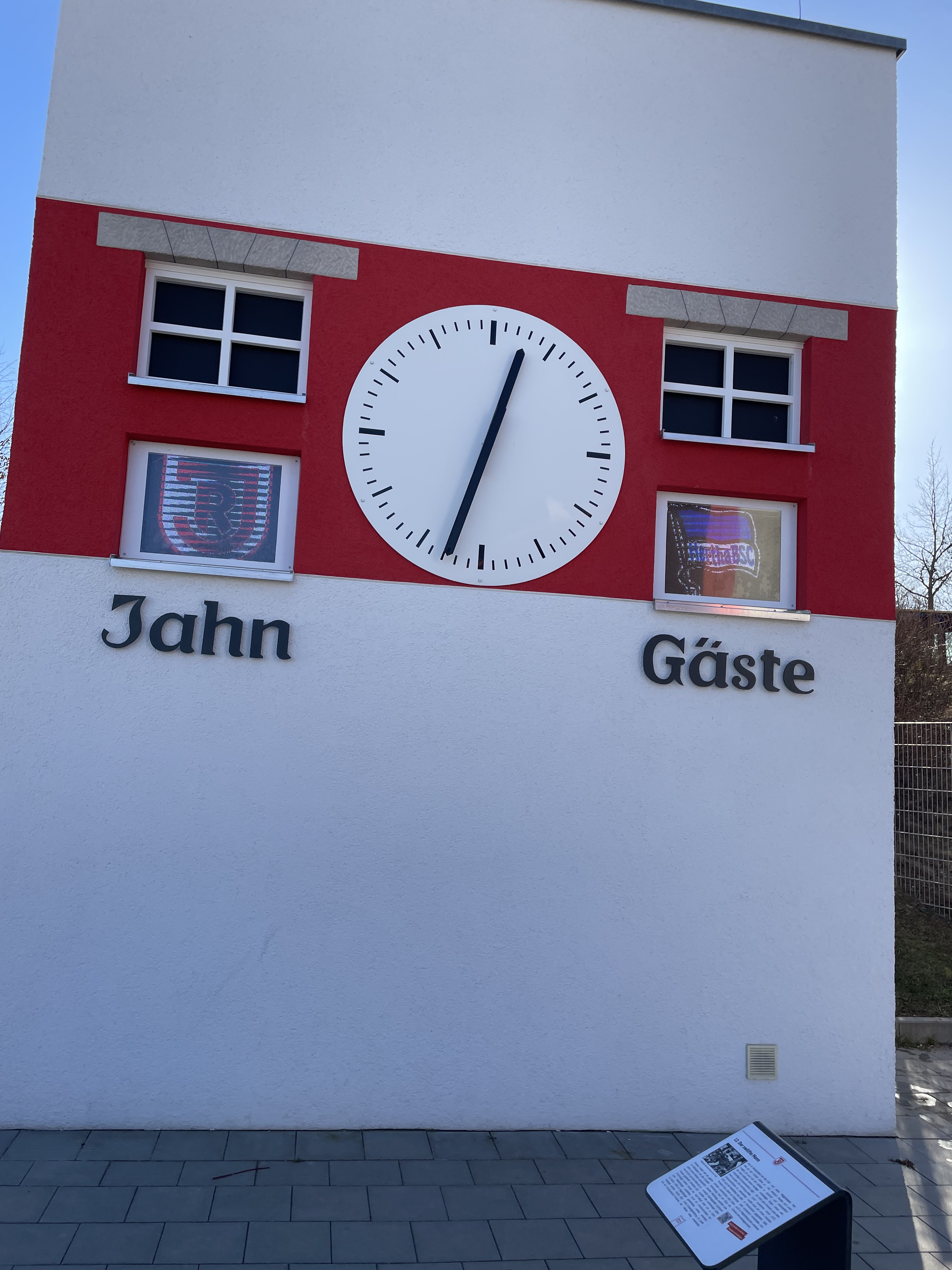 Problem Nummer 1: Mir musste meine Karte für das Spiel noch übergeben werden. Problem Nummer 2: Selbst der Puffer zum Anstoß schmolz langsam zusammen. Von einem Spaziergang durch Regensburg konnte ich nur noch träumen. Um kurz vor 12 war ich dann endlich am Hauptbahnhof, warf alle Werte über Bord und eilte zum Shuttlebus. Der Verkehr floss zäh und dann musste ich noch zahlreiche Schlaufen laufen, um zum Gästeeingang zu kommen. Wie in Paderborn, kommt man nur über den Gästeparkplatz in Richtung Eingang. Mega nervig und gerade für einen Neubau erschien mir die Logistik doch reichlich mangelhaft zu sein. Ich kann mich auch nicht erinnern, dass bei meinem Erstbesuch in Regensburg 2016 der Zugang ähnlich geregelt war.
