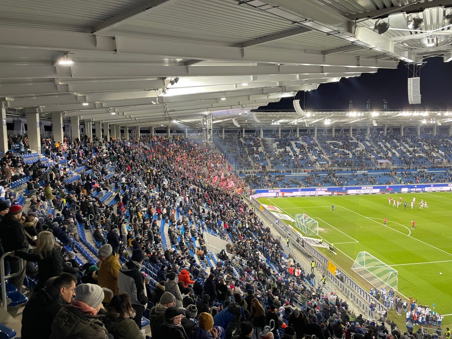 Dann ging es zu Fuß durch den Schlossgarten in Richtung Wildpark. Beleuchtung yok- aber die Menschenmassen strömten trotzdem entlang der Pfade! Das hatte schon etwas von Verschwörertum wie man im Pulk im Dunkeln zum Stadion lief. Mein letzter Besuch in Karlsruhe war während des Umbaus und sowohl äußerlich als auch innerlich hat sich das Stadion sehr verändert. Eigentlich sollte man sich für so etwas einen neuen Ground aufschreiben dürfen.