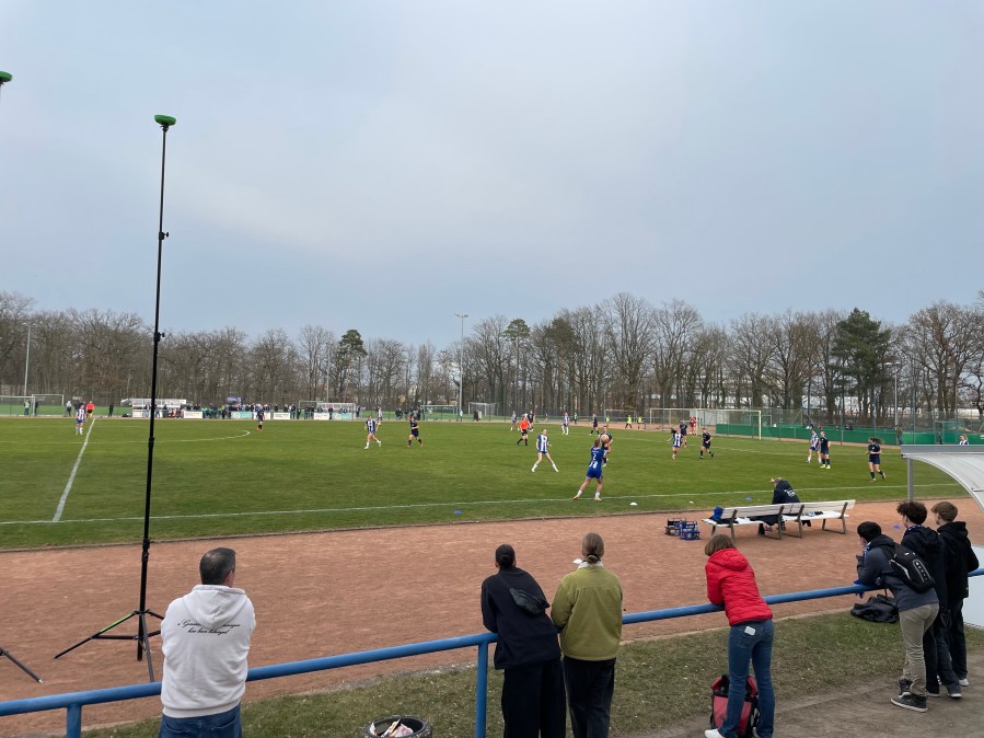 Ein sonniger Frühlingssonntag mit zugigem Wind, der die Kleidungswahl absolut unmöglich machte. Jacke an, Jacke aus, Jacke an, Jacke aus. Die Hertha Frauen schlugen heute in Potsdam auf. Klar, dass wir da dabei sein mussten. Eine unkomplizierte Anreise führte uns in das Sportforum Waldstadt. Eintrittskarte für 5 Euro, ein schönes Vereinsheim, ein paar Stufen. Das war von den Rahmenbedingungen besser als erwartet. Zudem gab es viel Platz für den Nachwuchshopper, sodass der Spielbesuch sehr entspannt verlief. Eine leckere Wurst rundete das Erlebnis ab.