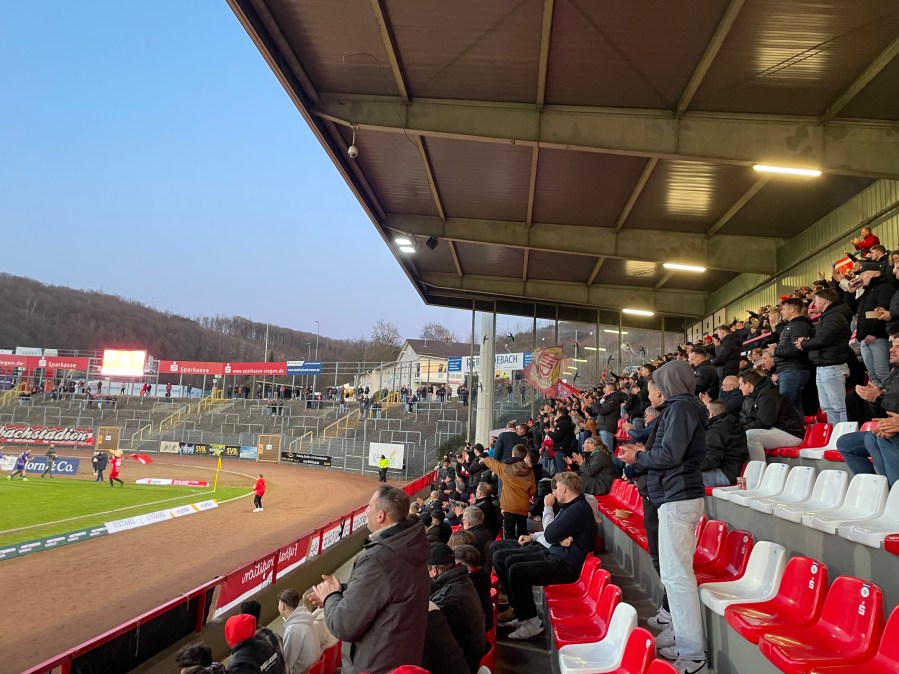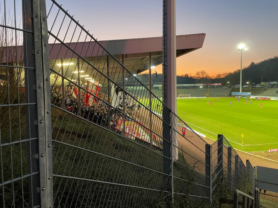 Siegen mischt fleißig im Aufstiegskampf mit. Heute mühte man sich zu einem 1:0 Erfolg. Das war keine Glanzleistung aber auch kein unverdienter Sieg. Im Gästeblock gab es leider keine organisierte Stimmung. [Ergänzung nach Kommentar (siehe unten): Bei dem heutigen Spieltag handelte es sich bereits um die dritte Ansetzung der Partie. Insbesondere die sehr kurzfristige zweite Absage der Partie erhitzte die Gemüter und sorgte für ein Stellungsnahmen-Battle zwischen den beiden Vereinen. Siegen wollte wohl spielen- Ahlen kam die Verlegung nicht ungelegen. Bitter für die Ahlener Fans, die dort bereits vor Ort waren. Somit ist der fehlende Support bei der dritten Ansetzung verständlich.]