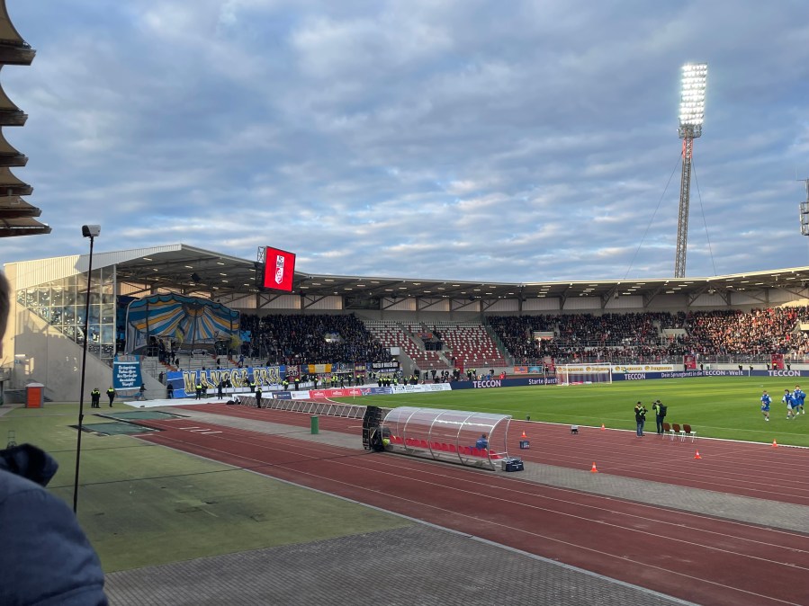 Das Stadion wurde bereits 1931 eröffnet und zuletzt 2015 umfassend renoviert. Insbesondere die sehenswerte Dachkonstruktion und die geniale Lage am Fuße des Steigerwaldstadions gefielen mir extrem gut.