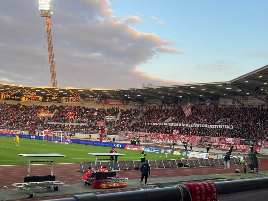 Die Gesinnung ist sicher kein Einzelfall für den Jungsturm und rechte Ideologien der Mitglieder sind gut dokumentiert. Umso beachtlicher, dass die Steigerwaldkurve um die Erfordia Ultras eine derart deutliche Abgrenzung hinbekommen haben. Das riesige Gruppeninterview in zwei Erlebnis Fußball Ausgaben kann ich nur jedem ans Herz legen. Ich oute mich an dieser Stelle einfach mal als Fan. Ich finde die Entwicklung von Erfurt in den letzten Jahren wirklich beachtlich.