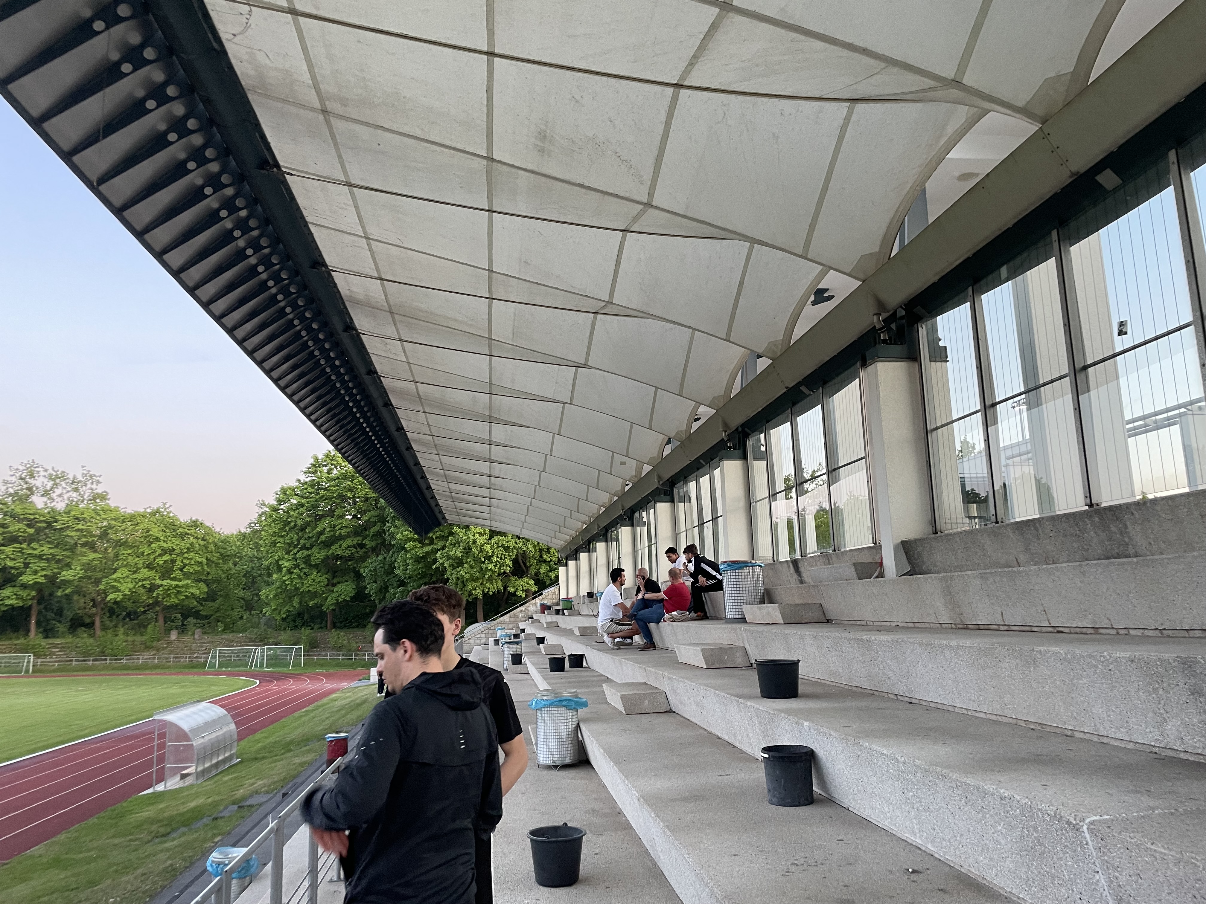 Das Stadion ist wunderbar und wir fanden uns auf der sehenswerten Tribüne ein. Die Lage inmitten des Volksparks Mariendorfs ist auch ein echtes Highlight. Ein leckeres kulinarisches Angebot rundete die Sache hier ab. Viel besser geht es kaum. Dazu im absoluten Herthagebiet im Berliner Südwesten. Es war ein richtig entspannter Abend. Auch nach dem Abpfiff spurteten wir nicht sofort los, sondern tranken noch in Ruhe aus und genossen die angenehme Atmosphäre.