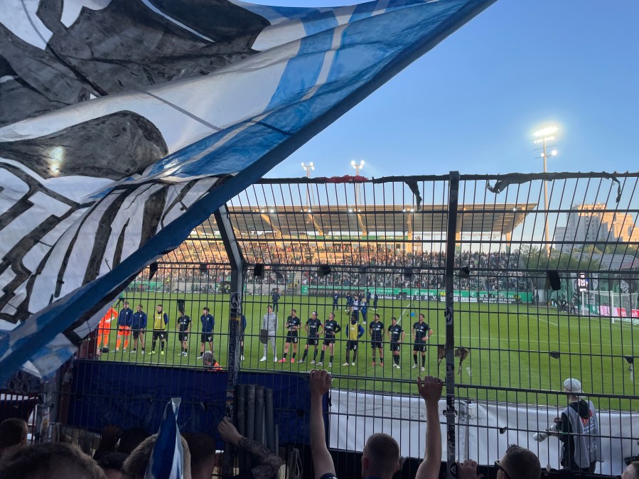 Die Münsteraner Fanszene zelebrierte im Nachgang noch den Abschied von ihrer Kurve und blieb noch lange im Stadion. Wir machten uns zügig auf den Weg zum Auto, wurden noch von einer Münster Kutte angequatscht, die wohl in den 80er Jahren schon mal bei einem Gastspiel von Münster im Olympiastadion war und erreichten dann ereignislos gegen 0:30 unser Zuhause. Danke für die erneute Mitfahrgelegenheit.