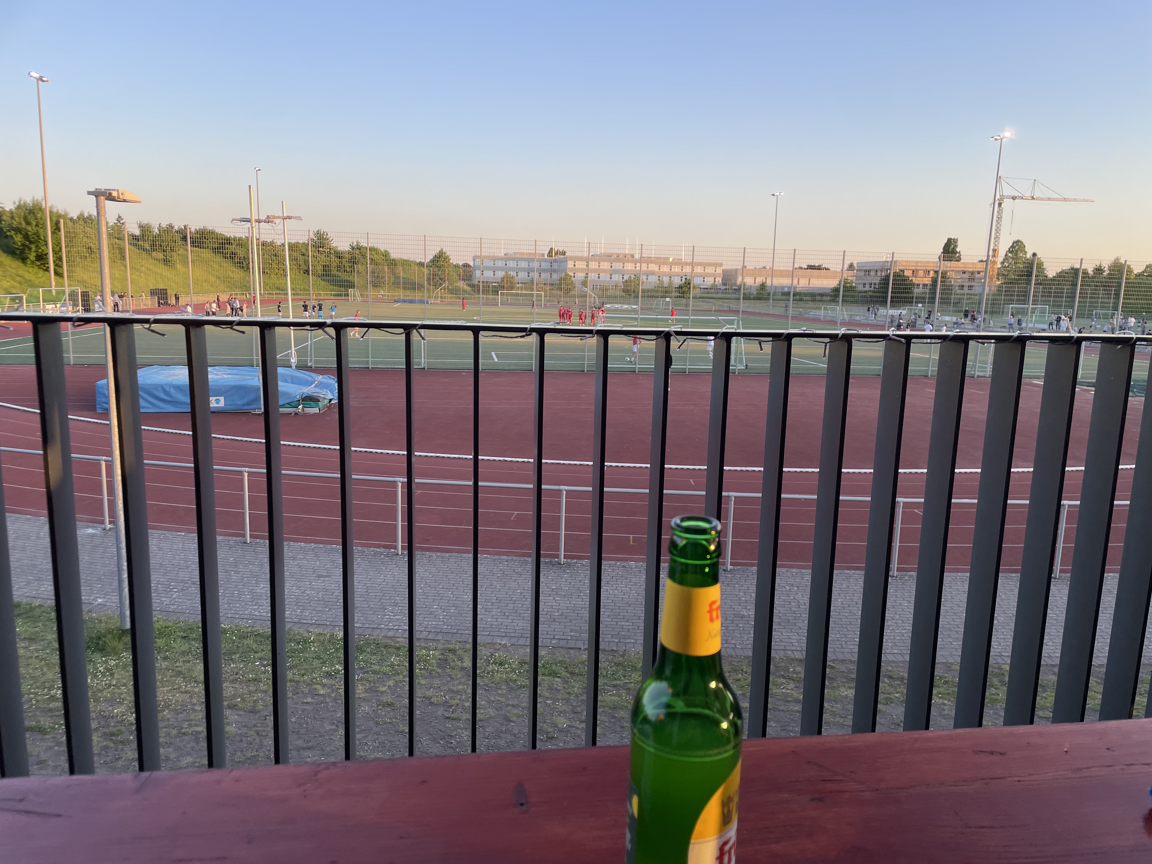 Wir nutzten das schöne Wetter und pendelten ein wenig zwischen unserem Platz und dem Vereinsheim. Die Getränkeauswahl war gut und auch ein Eis gab es. Nur die Preise waren eher steil- vermutlich bin ich da aber durch Berlin und Brandenburg etwas verwöhnt. Es war ein richtig schöner Abend.