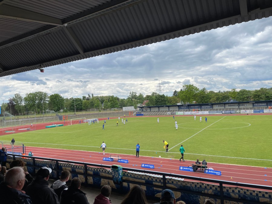 Stahl Brandenburg! Es gibt wohl keinen Namen in den Deutschen Landesligen, der größer klingt. Von 1984 bis 1991 spielte die BSG-Stahl in der DDR Oberliga. 1986/1987 nahm man sogar am UEFA Pokal teil und durfte zwei Partien austragen. Gegen den FC Coleraine konnte man sich durchsetzen, ehe dann in der zweiten Runde gegen den späteren Titelträger IFK Göteborg ausschied. Wahnsinn! So lange ist das alles auch noch gar nicht her und so ist davon auszugehen, dass einige der 361 anwesenden Zuschauer auch damals schon dabei waren.