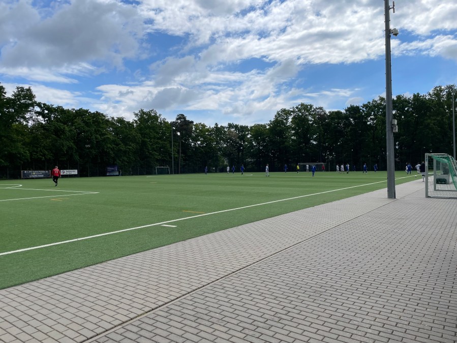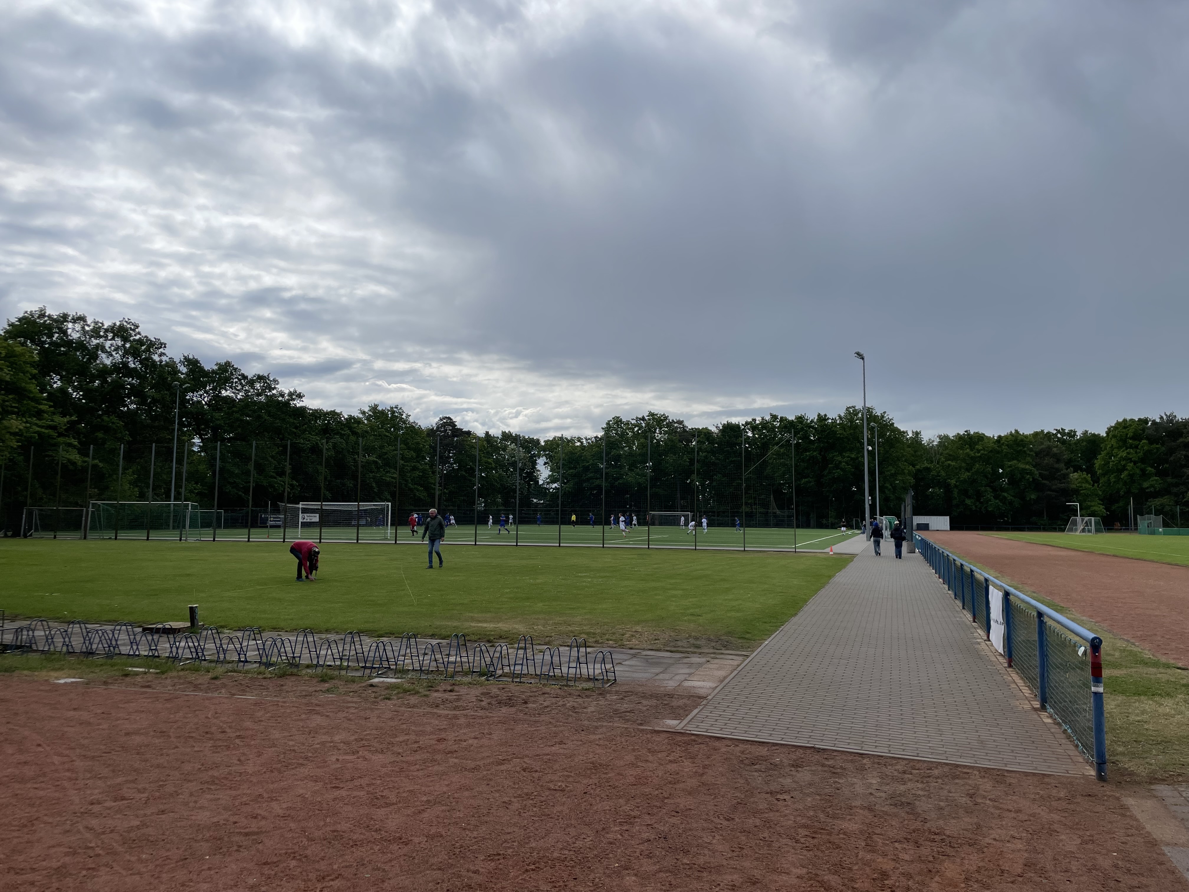 Die späte Anstoßzeit am Abschlusspieltag der zweiten Liga, eröffnete die Möglichkeit am Vormittag noch einen dreckigen Kunstrasen wegzuscheppern. Im Sportforum hatten wir bisher nur ein Spiel auf Rasen geguckt, sodass mit dem Spiel des Potsdamer FC die Anlage komplettiert werden konnte. Auch das schlechte Wetter, konnte uns heute nicht aufhalten und so schwangen wir uns auf das Fahrrad. Aufgehalten wurden anscheinend aber alle anderen Leute, denn hier war wirklich gar nichts los. Die auf Fussball.de angegebene Zuschauerzahl von 15 erschien mir auch noch etwas zu hoch. Gefühlt waren wir die einzigen Menschen, die sich absichtlich auf der Anlage eingefunden hatten.