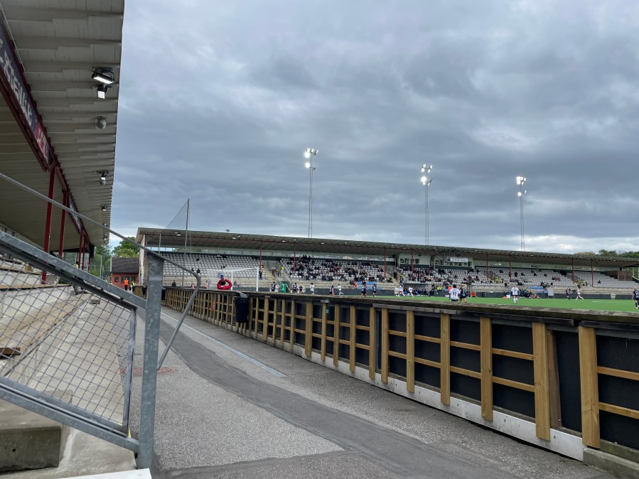 Das Stadion gefiel mir erstaunlich gut. Jede der vier Tribünen sah komplett eigen aus und gaben dem Stadion das gewisse Etwas. Unsere Holzbänke waren auch ein echter Hingucker. Lediglich der Kunstrasen gab gewisse Minuspunkte- aber das ist eben Skandinavien. BK Häcken bekannt aus zahlreichen Spielen gegen Bayer Leverkusen hat auch eine potente Frauenmannschaft und war heute das klar bessere Team. Am Ende reichte das aber nur für ein 0:1. Unterstützt wurden sie von etwa 50 Leuten im Gästeblock, die einige Fahnen mitgebracht hatten. Das sah sehr nach einer Fifa Gästeblock Animation aus.