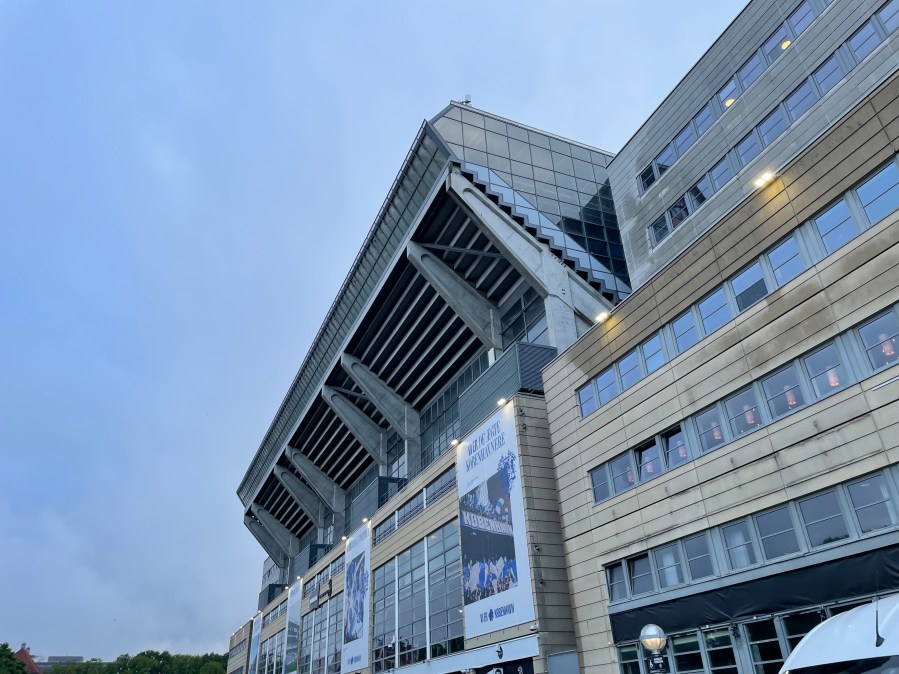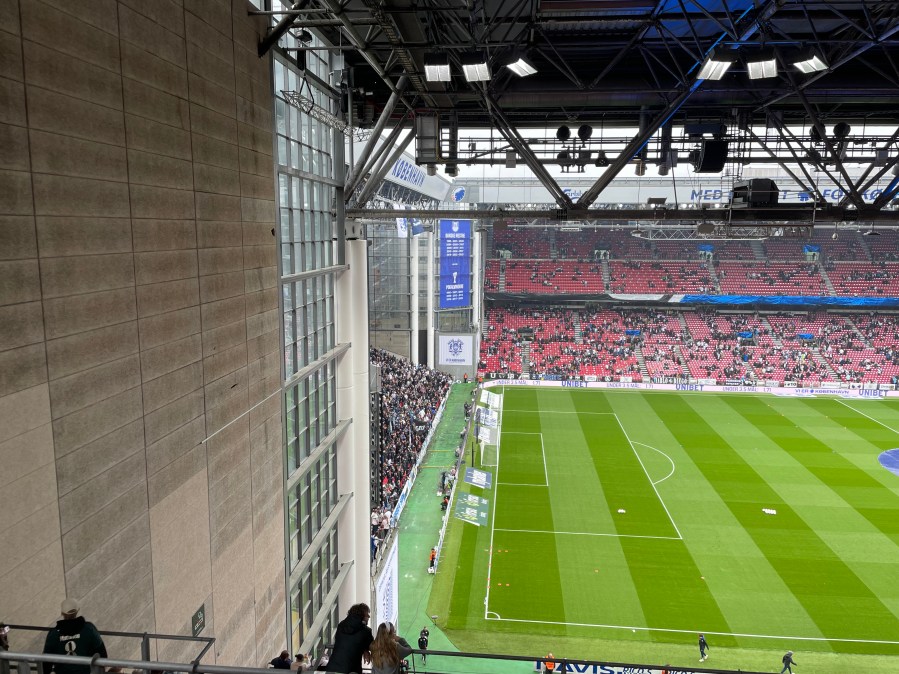Dann ging es für mich zu Fuß zum Stadion. Die Kopenhagener Szene hatte gerade ihre Kurve betreten und einen riesigen Berg an Bierdosen und Böllern hinterlassen. Die Pfandsammler rieben sich die Hände und schleppten säckeweise Dosen weg. Am Einlass gab es überhaupt keine Schlange und so betrat ich circa eine Stunde vor Anpfiff das Stadion. Aufgrund der schwierigen Kartensituation hatte ich keine Möglichkeit die Lage des Platzes zu verifizieren. Es war ein kleiner Dämpfer, dass ich nah an einer Wand saß und somit keinen uneingeschränkten Blick auf die Kurve hatte. Schade, aber heute zählte es einfach dabei zu sein.