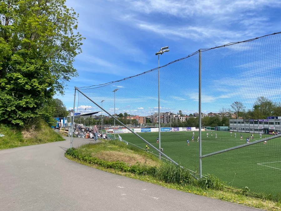 Wir hatten den Vormittag genutzt, um den Hafenwanderweg zu laufen. Dieser führte uns erst durch die Innenstadt und dann sehenswert immer an der Küstenlinie entlang. Erst das letzte Stück war dann nicht mehr so ansehnlich und so waren wir am Ende etwas geschafft. So richtig wussten wir auch nicht wie wir nun weitermachen sollten: Abbiegen, zurückfahren, zurücklaufen. Wir checkten die Optionen und mehr unterbewusst schmiss ich auch in der Dwids-App noch einmal den Spieleradar an. Ich hatte nicht einmal damit gerechnet, dass die App für Norwegen Ergebnisse ausspucken würde, aber es kam noch ein Spiel zum Vorschein, dass in der Futbology App nicht aufgeführt war. Der Ground war von unserem Standort sehr einfach zu erreichen und die Anstoßzeit passte perfekt. Danke Dwidswoch!