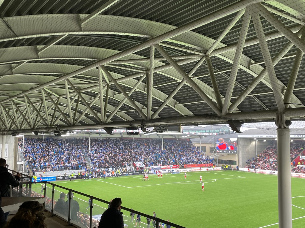 Das Spiel war ein richtig geiles Derby. Beide Teams hatten extrem Bock und kämpften um jeden Meter. Der Videobeweis killte leider komplett einen Moment. Die Gäste gingen nach einem Standard in Führung. Es folgte ein richtig geiler Torjubel und Teile der Szene war auf dem Platz und feierte mit den Spielern. Kurze Zeit später griff der VAR ein und erkannte ein angebliches Stürmerfoul. Das sah ich nicht.