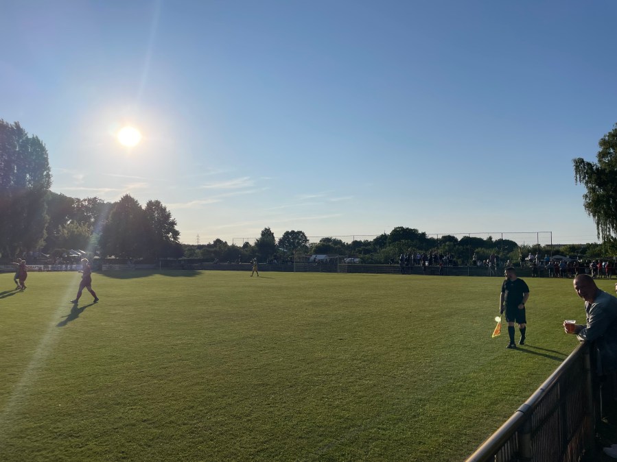 Das Stadion war überraschend cool. Eine schöne Lage, viel Platz und Stufen an allen vier Seiten. Die mitgereisten Fans aus Falkensee hatten sich mit circa 40 Leuten auf der Gegentribüne eingefunden. Mit einer schicken Zaunfahne und einem Schwenker traten sie auch optisch in Erscheinung. Vermutlich aufgrund der Bedeutungslosigkeit des Spiels, wurde allerdings nicht gesungen. Spannend dennoch, dass zunehmend auch bei kleineren Vereinen etwas entsteht.