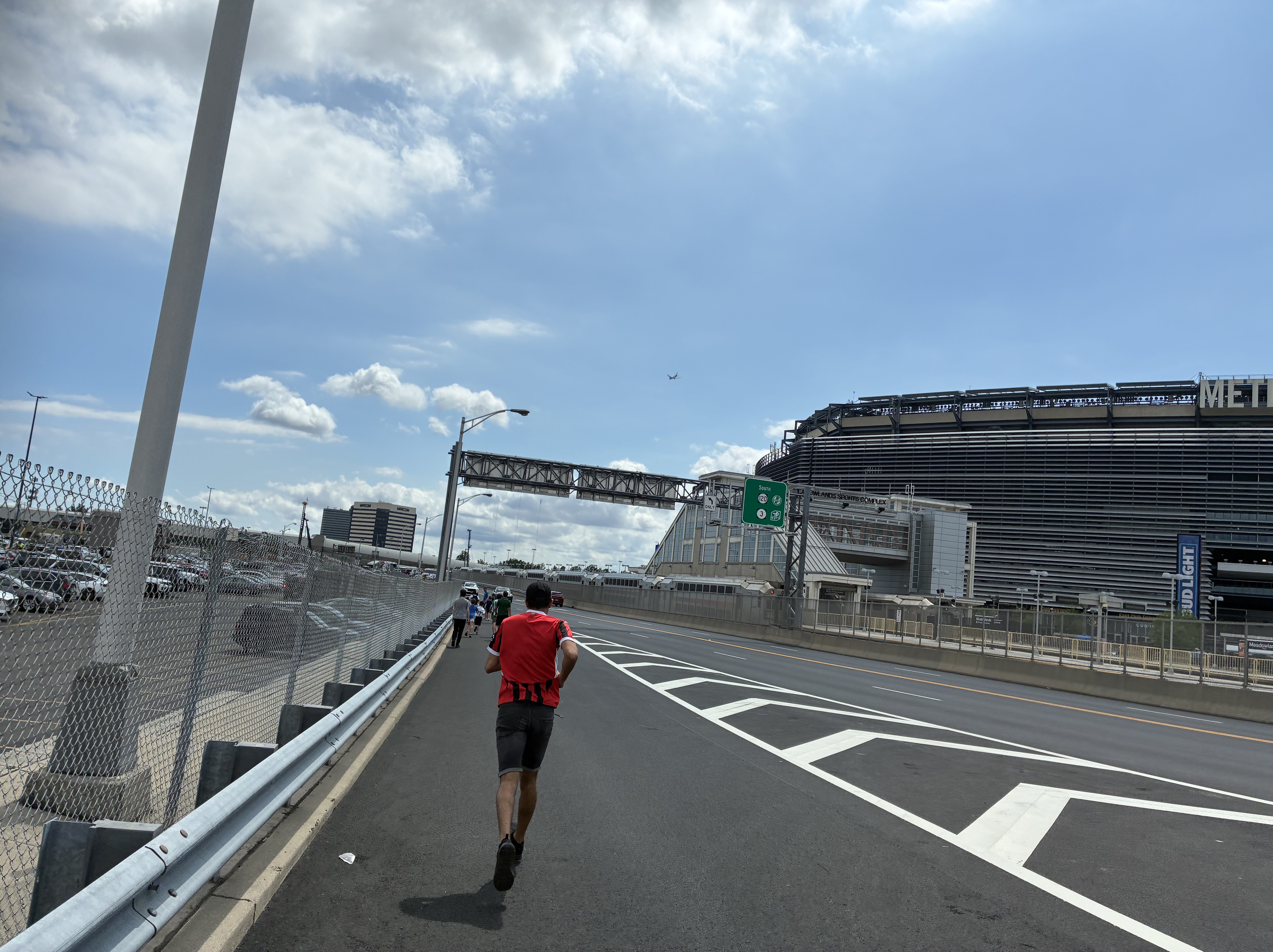 Nach gefühlten Ewigkeiten rollten wir los. Der Tunnel nach New Jersey lief noch relativ reibungslos. Danach gerieten wir in einen unfassbaren Stau und die Minuten schmolzen nur so dahin. Um 14:50 fuhren wir dann von der Autobahn ab und am Stadion vorbei. Anstatt zu halten, fuhr die Busfahrerin einfach weiter. Erst nach Protesten hielt sie circa einen Kilometer weiter direkt an der Autobahn. Sie könne aufgrund des Spiels nicht am Stadion halten. Also ließ sie uns alle 1,5 Kilometer vom Stadion entfernt direkt an der Autobahn heraus. Alter- sind die dumm!