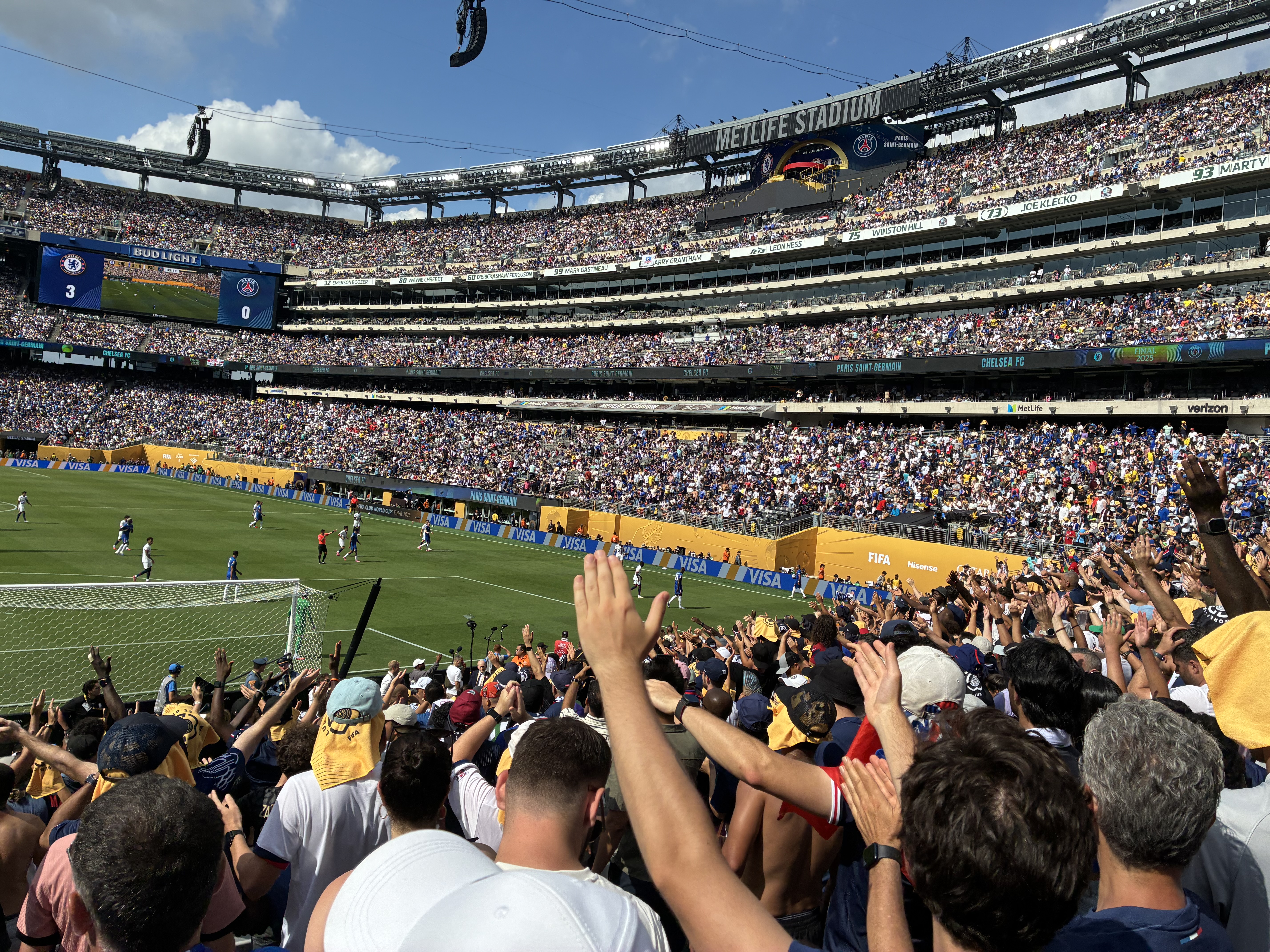 Durch die Fanszenemedien geisterte im Vorfeld, dass den PSG-Ultras ein Paket für Flug, Ticket und Hotel für 500 Euro angeboten wurde. Circa 50 hatten dieses Angebot wohl angenommen. Vielleicht bin ich moralisch auch korrumpiert, indem ich das Finale der Klub-WM besucht habe- aber das hat schon ein negatives Geschmäckle. Mit Trommel und Megaphon versuchten sie die Mannschaft zu unterstützen. Aufgrund der riesigen Anzahl an Chelsea Fans und Eventies, gelang das jedoch kaum. Es reichte für die Stimmungshoheit im Stadion- aber die Stimmung blieb weitestgehend blass. Die Ausgestaltung dieses Events war schon ziemlich widerlich und fanfeindlich. Das hätte man so leicht besser gestalten können. Theorie des Turniers in Ordnung- Ausführung pfui ist mein Fazit!