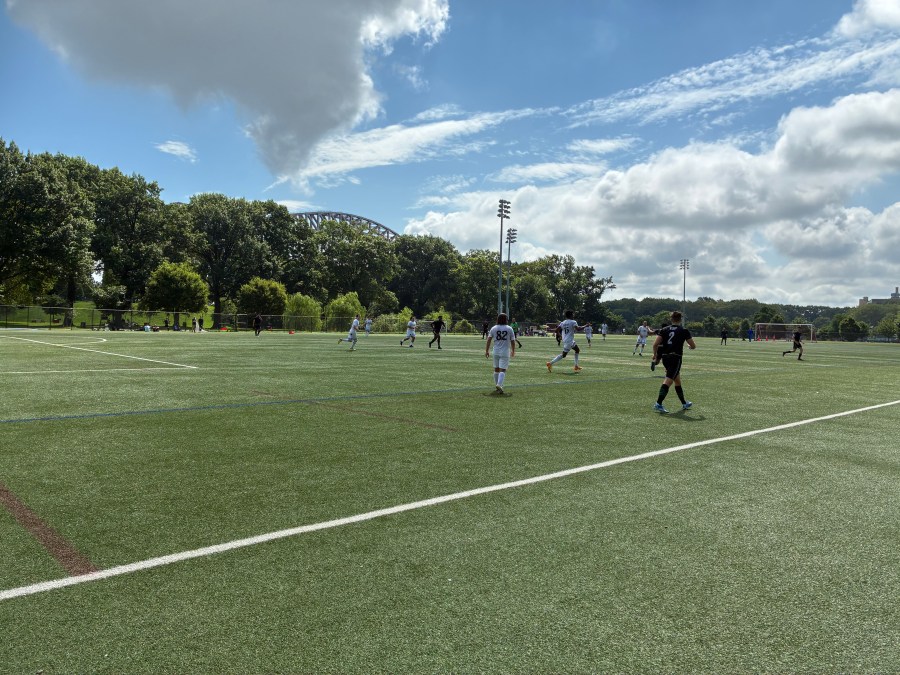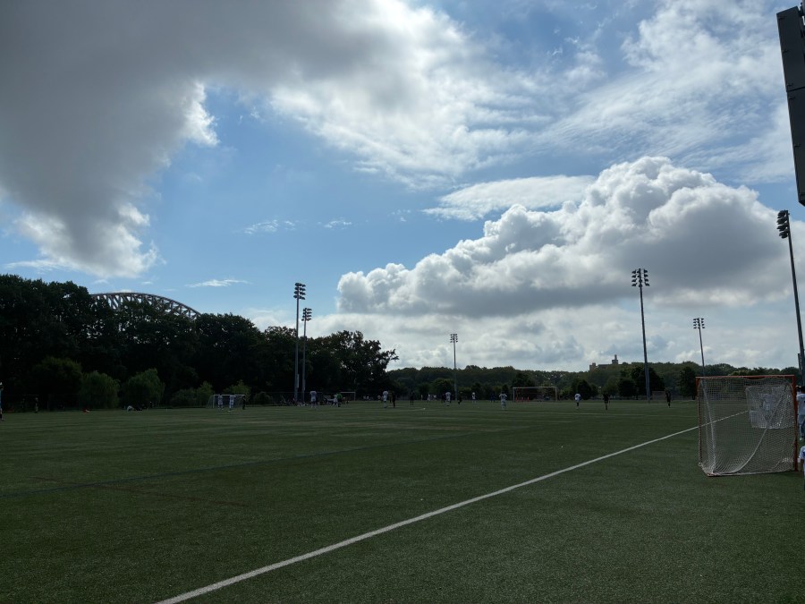 Bei einmal mehr knackigen Temperaturen erreichte ich dann irgendwann die Brücke, die mich auf die Randall’s Island führen sollte. Auch dank eines leicht verspäteten Anpfiffs, verpasste ich am Ende kaum etwas. Die Insel ist schon absolut überragend. Motorisierte Fahrzeuge sind hier kaum zu finden und im südlichen Bereich der Insel sind zahlreiche Fußballplätze angesiedelt. Mein auserwähltes Spiel der Freizeitliga fand auf dem Feld #75 statt. Der Platz bot eine spektakuläre Aussicht auf die Hell Gate Bridge. Davon abgesehen waren das einfach Fußballplätze ohne große Highlights.