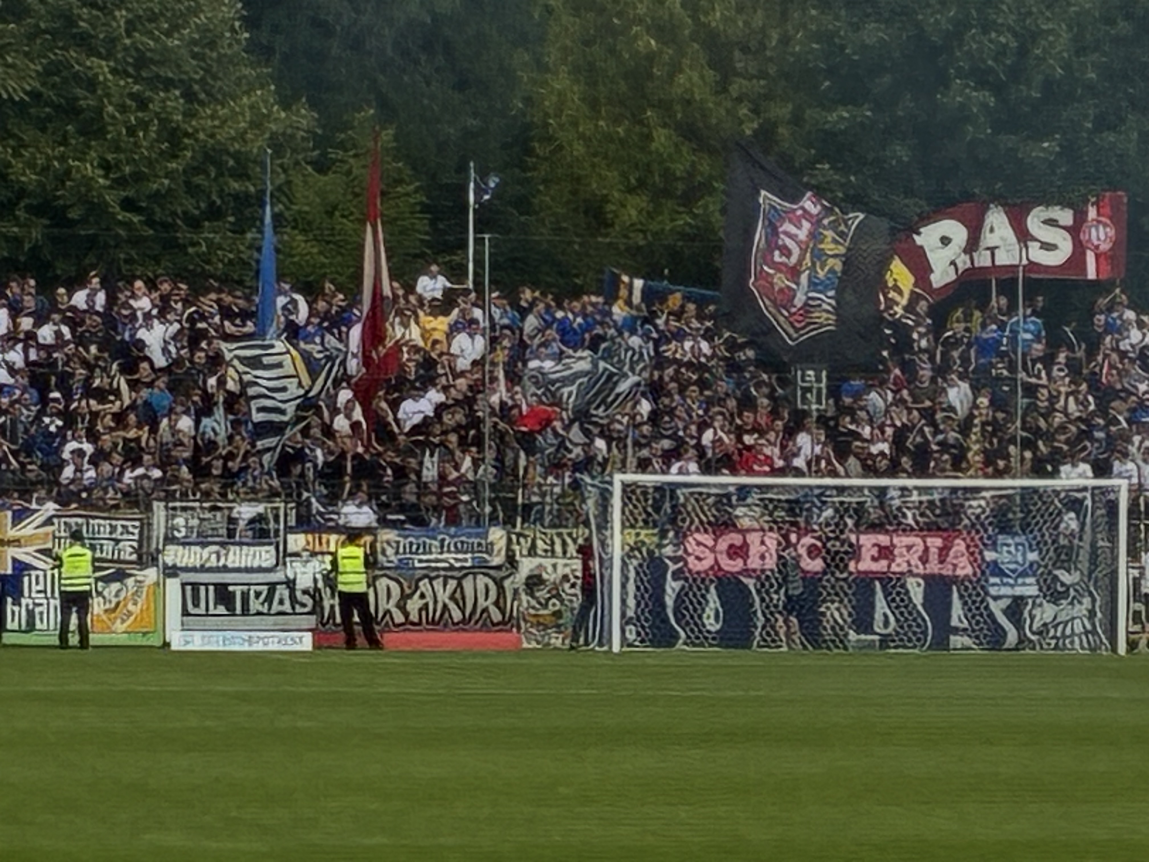 In Babelsberg hat sich zu Beginn der neuen Saison einiges getan. Es gab wohl eine Aufspaltung der Underdogs in drei Teile. Der eine Teil der Gruppe ist mit Zaunfahne in die Nordkurve zurückgekehrt. Ein weiterer Teil ist als Chicos ebenfalls in die Nordkurve gezogen. Der letzte Teil ist auf der Hintertortribüne verblieben und versucht sich an einem Neustart. Man fungiert wohl unter den Namen „1903“ , was bereits als Vorläufer der Underdogs als Name genutzt wurde. Der bereits vorher existierende Zusammenschluss „Mythos Babelsberg“ scheint zumindest eine große Nähe aufzuweisen.