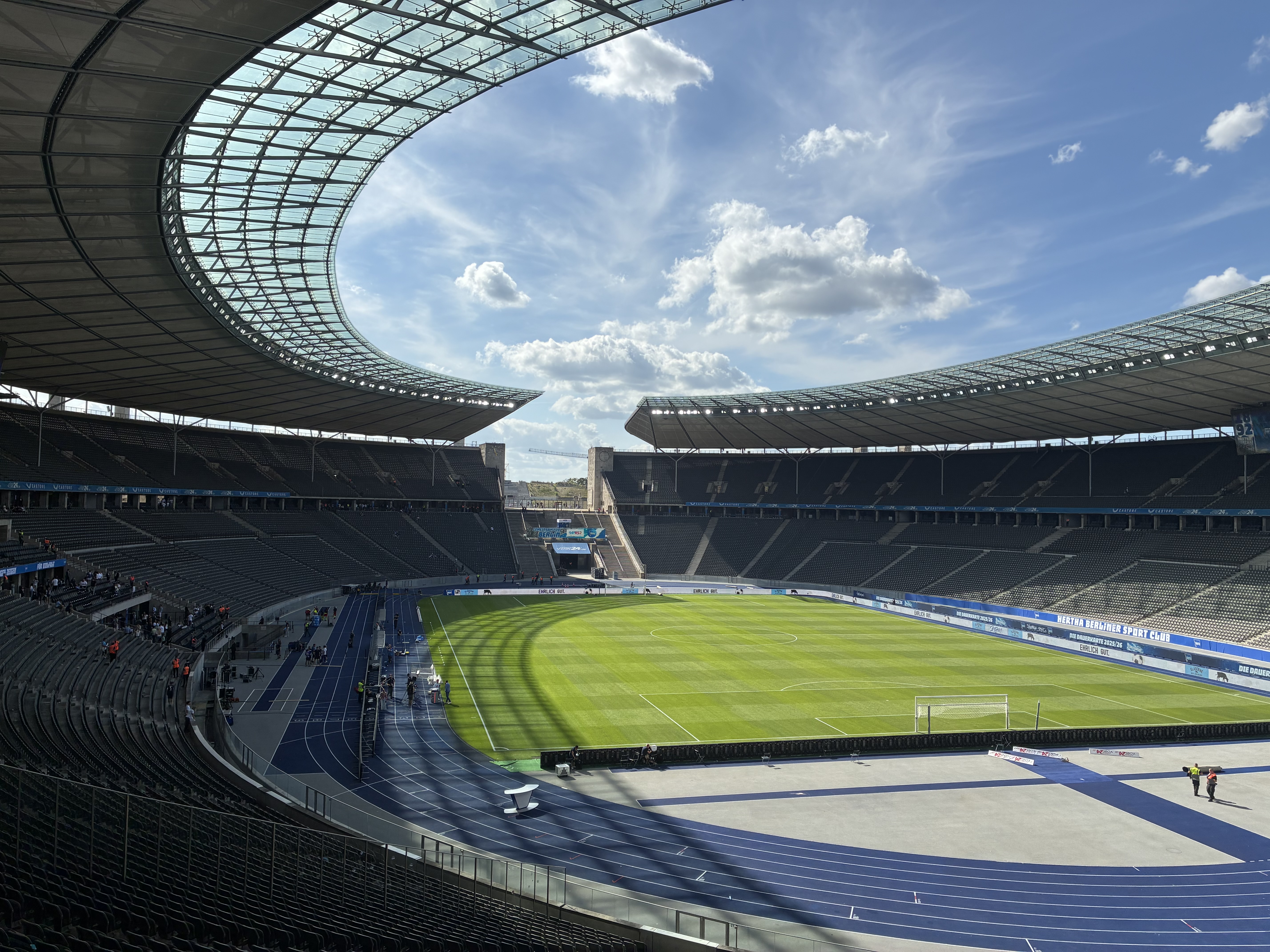 Die Anreise war pittoresk und so ging es weitestgehend durch Wälder und an Seen vorbei in Richtung Olympiastadion. Google Maps ist ein wenig ambitionierter Läufer- aber ein begnadeter Fahrradfahrer. Unebene Wege, schnelle Zeiten- hier ist alles möglich. Trotz meiner zügigen Fahrweise konnte ich die erwartete Ankunftszeit mit Mühe und Not konstant halten. Die letzten Meter durch den Grunewald ging es dann auch sogar eine Mountainbikestrecke entlang. So war ich nicht böse, als ich das Fahrrad parkte und zum Einlass ging.