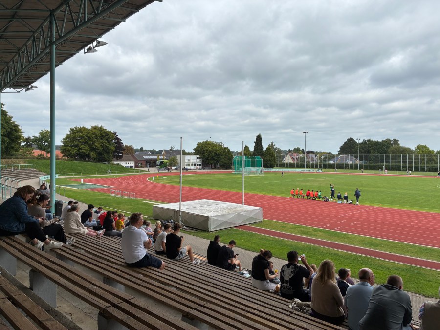 Mit einem dankenswerterweise ausgeliehenen Auto machte ich mich auf die Bahn und steuerte das Sportstadion an. Akku und mobile Daten waren knapp und so fuhr ich ziemlich ahnungslos in einen heftigen Stau. Zum Glück konnte ich direkt an der nächsten Auffahrt wieder abfahren und den Stau weitestgehend umgehen. Circa zehn Minuten vor dem Anpfiff erreichte ich dann das Stadion, fand entspannt einen Parkplatz und betrat die Sportanlage.