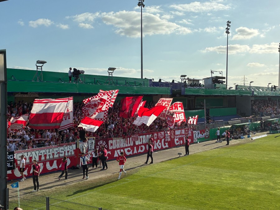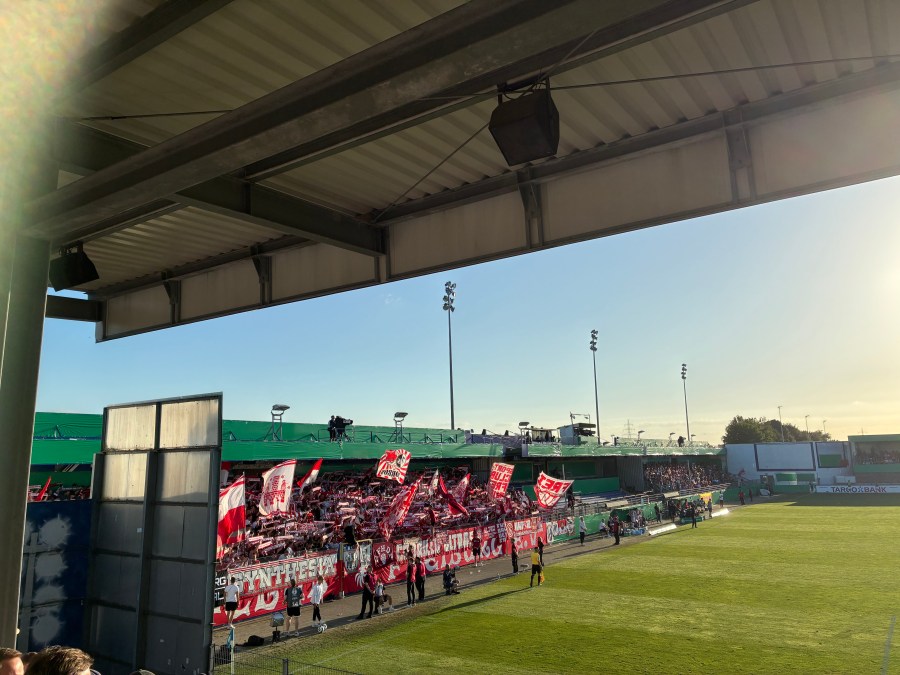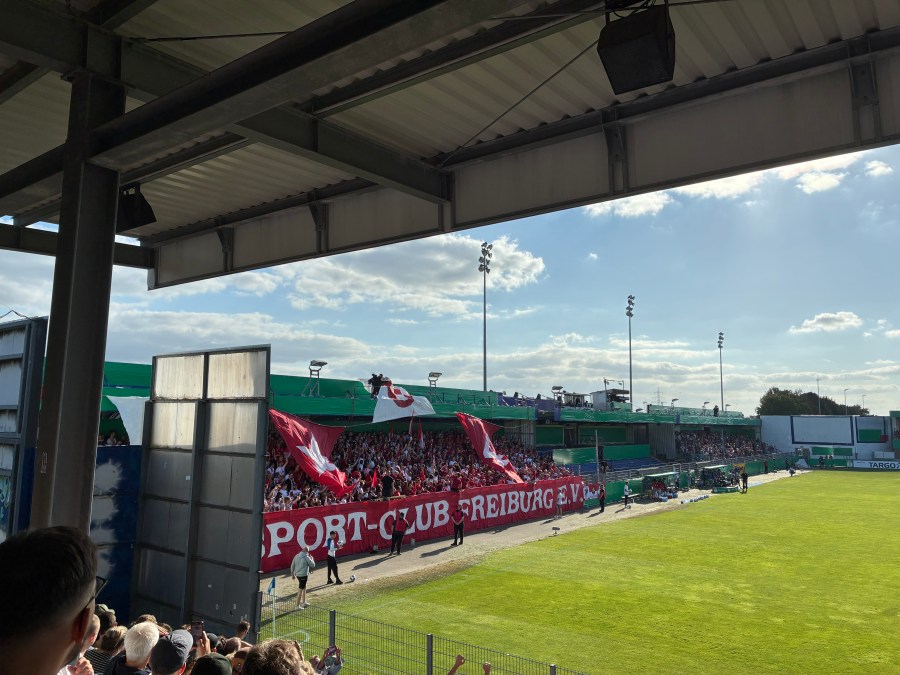 Stilecht ging es an einem Feldweg vorbei und dann erreichte man das Stadion. Ich hatte dieses fälschlicherweise als Neubau abgespeichert. Tatsächlich wurde das Stadion bereits im Jahr 1986 eröffnet und wurde dann über die Jahrzehnte Stück für Stück erweitert. Ich fand das Resultat gar nicht so verkehrt. Mit Blick auf die Alternativen in der ersten Pokalrunde, war das vermutlich sogar eines der besseren Lose. Sportlich machbar und zumindest eine relative Sicherheit, dass das Spiel zumindest in dem Stadion ausgetragen wird. Glückwunsch an den SC Freiburg.