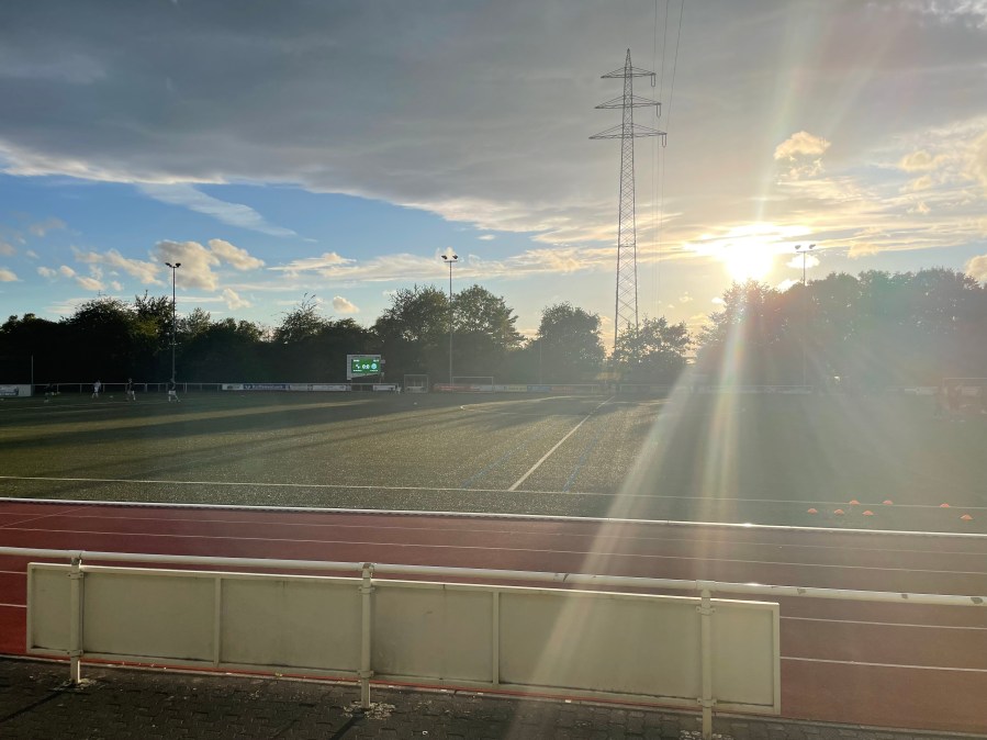 Wenn die erste Runde des DFB-Pokals immer mehr an Glanz und Charme verliert, muss man sich seine Glückserlebnisse woanders suchen. Mein Blick fällt dabei immer wieder auf die verschiedenen Landespokale. Welch ein Glück, dass unter der Woche die zweite Runde des Rheinlandpokals angesetzt war. Das Spiel in Windhagen erschien erreichbar und ich hatte schnell einen Mitstreiter für diesen sinnlosen Ausritt gefunden. Also let’s go! Noch schnell einmal nach der Arbeit ins Zimmer und dann zur Straßenbahn, die uns nach Bad Honnef führen sollte. Von dort ging es dann mit dem Bus über eine fast schon abenteuerliche Passstraße nach Windhagen. Dass es einen stündlich verkehrenden Bus gab, überraschte fast. Wir kamen um kurz nach 7 in dem verschlafenen Örtchen an und betraten fast unmittelbar die Sportanlage.