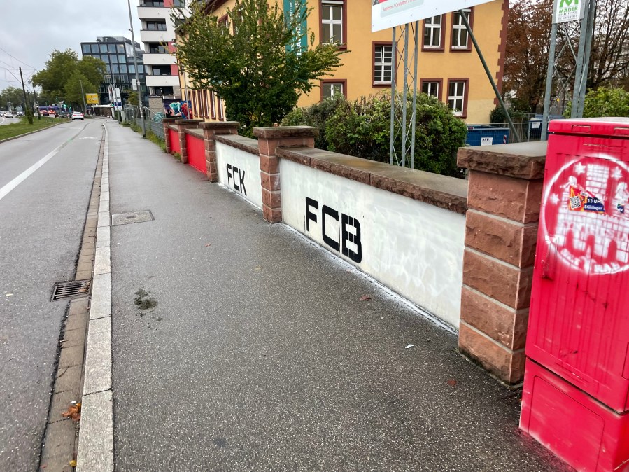 Freiburg ist einfach viel zu weit weg und so juckelte der Zug sieben Stunden durch ganz Deutschland. Meine ursprüngliche Verbindung war bereits am Morgen nicht mehr fahrbar gewesen. Zeitlich war es identisch, aber so konnte ich bereits in Berlin in den Zug einsteigen und musste nicht mehr umsteigen. Mit circa 20 Minuten war auch die Verspätung im Rahmen. Freiburg empfing mich mit kühlen Temperaturen und Nieselregen. Das entsprach so gar nicht dem Klischee der wärmsten Region Deutschlands. Aus Gewohnheit lief ich in Richtung meines Hotels, ehe ich mich erinnerte, dass ich mit dem Deutschlandticket ja sogar kostenlos fahren kann. Also stieg ich wahllos in eine Bahn, ohne meinem Ziel näherzukommen. Die letzten Meter ging es dann zu Fuß zum Hotel. Auf dem Weg passierte ich ein „FCK FCB“ Graffiti, was mich einigermaßen irritierte.