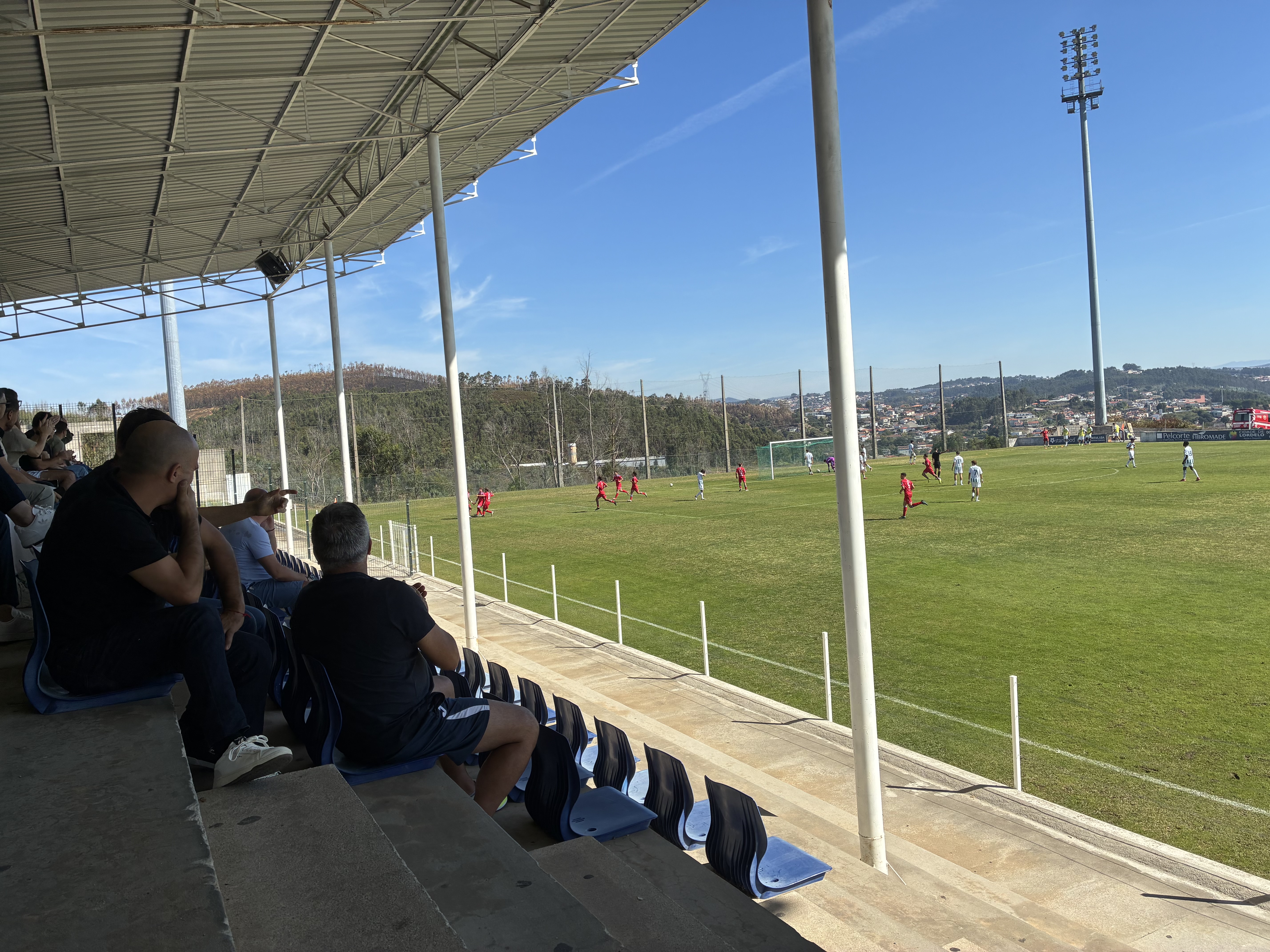 Mittwochvormittag 11:00 und ein regulärer Werktag. Was kann es da Sinnvolleres geben als ein Fußballspiel um 11:00 anzusetzen? Wir wähnten uns an Ort und Stelle, da wir sowieso die Zeit in Vila do Conde verbrachten und wollten einen Versuch wagen die Sektion Stadionverbot mitreinzubekommen. Ausnahmsweise versagte ZeroZero heute einmal, denn der Spielort war nicht korrekt eingetragen. Mein Check der Facebookseite um 10:00 verdeutlichte, dass das Spiel aus mir unerfindlichen Gründen in Lordelo ausgetragen würde. Kurzer Blick bei Google Maps- das kann noch klappen. Also verließ ich fluchtartig den Spielplatz und flitzte zum Auto. Um 10:58 betrat ich dann das Stadion in Lordelo. So macht man das, liebe Kinder!